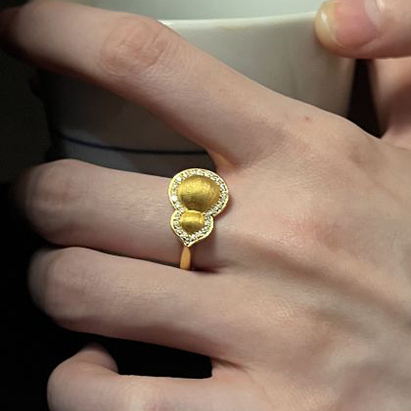 小红书爆款拉丝葫芦戒指新款古法新中式重工点钻指环