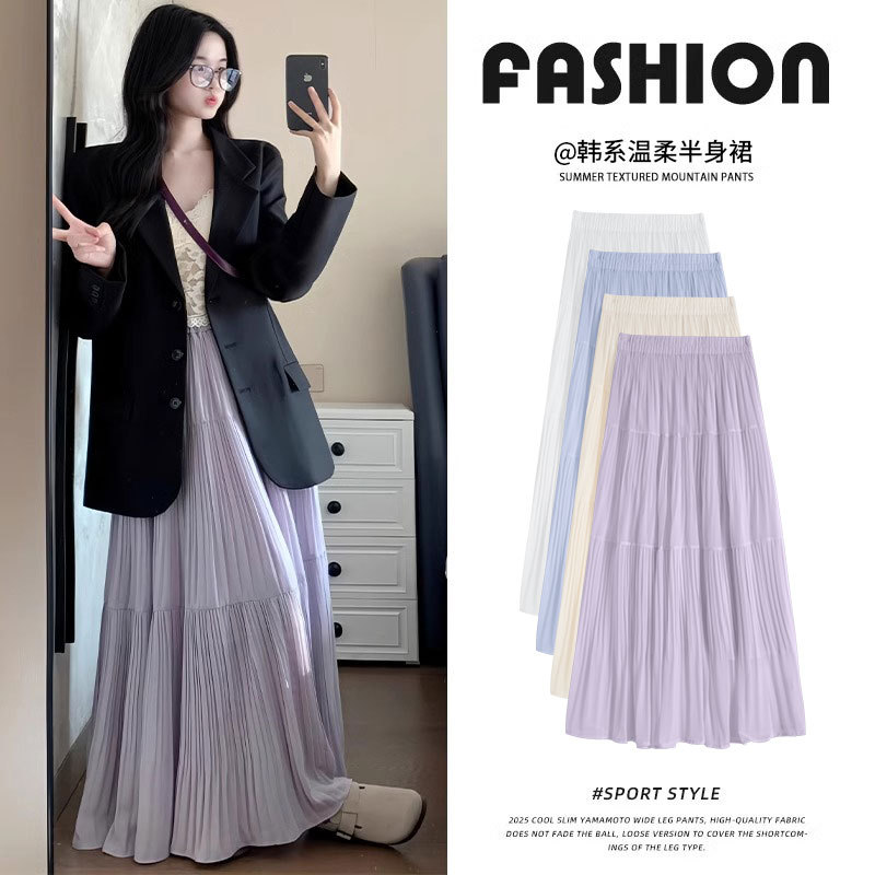 紫色半身长裙女夏季2025新款高腰仙女蛋糕裙小个子a字雪纺大摆裙