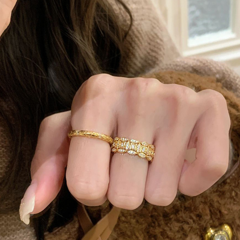 小红书爆款钱多多金币戒指2025蛇年新款满钻招财铜钱指环一件代发