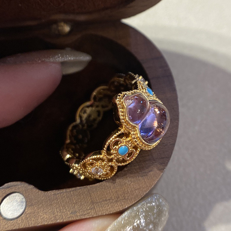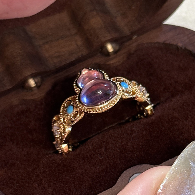 小红书爆款九紫离火葫芦戒指女古法国潮珐琅彩宝紫晶葫芦福禄指环