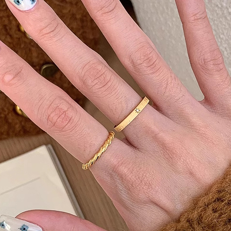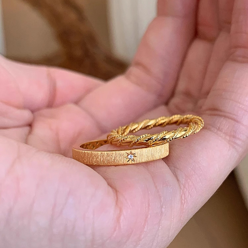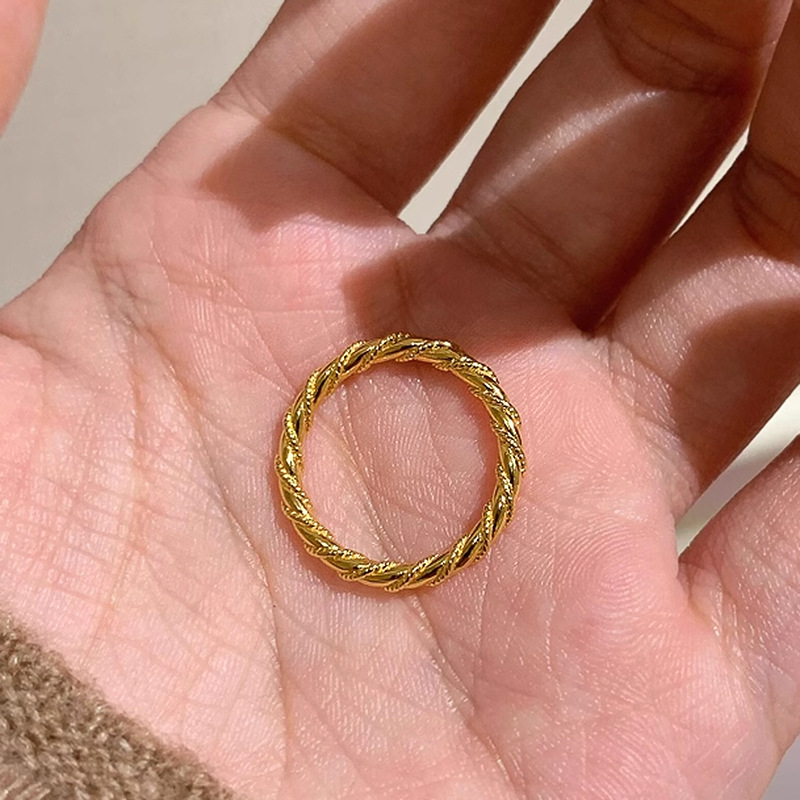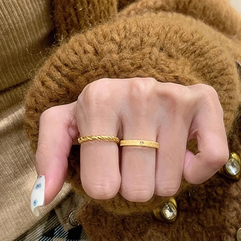 小红书爆款麻花戒指中古风古法金色素圈可调节精致指环一件代发女