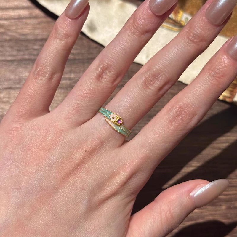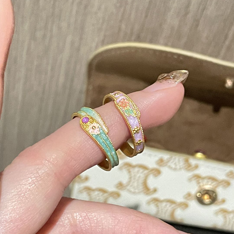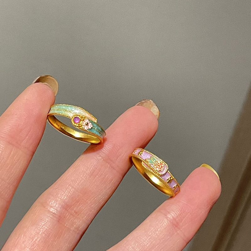 小红书爆款复古新中式珐琅彩滴釉印花桃花粉戒指2025新款精致指环