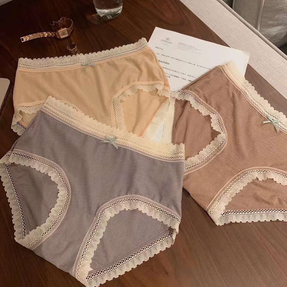 亿涵梦日系奶盖蕾丝花边性感小心机无痕纯棉裆部女士中腰三角裤