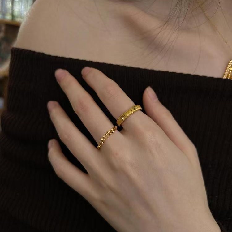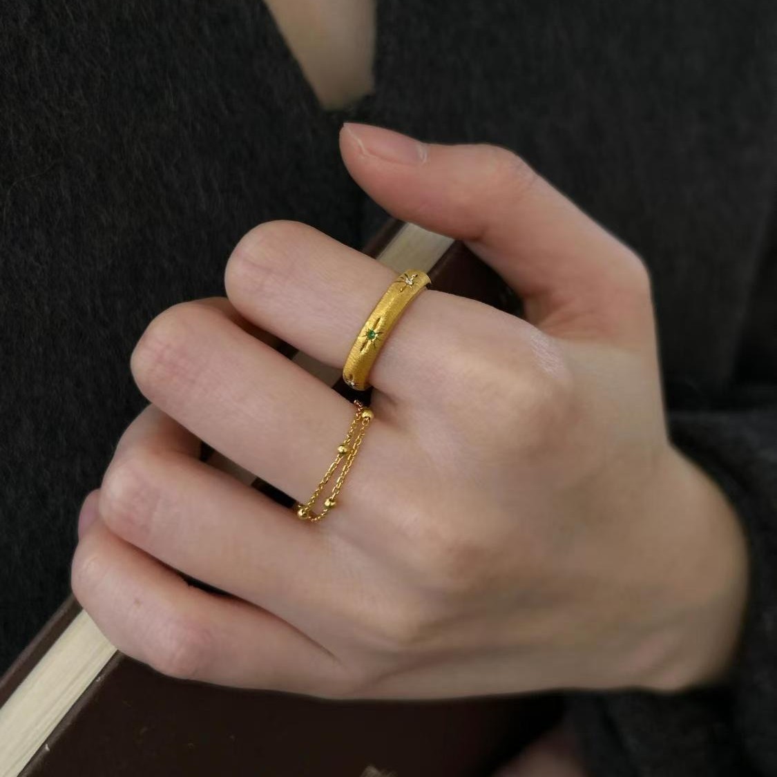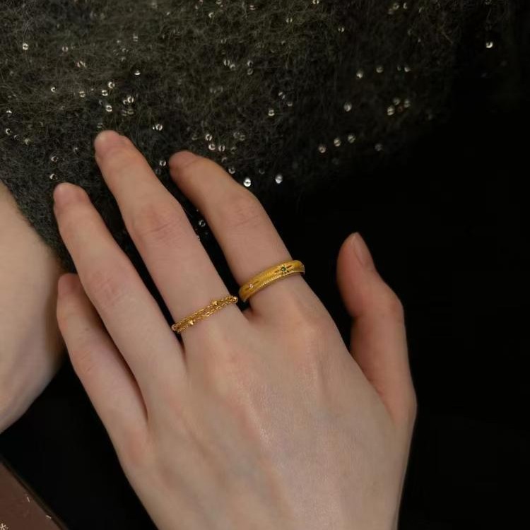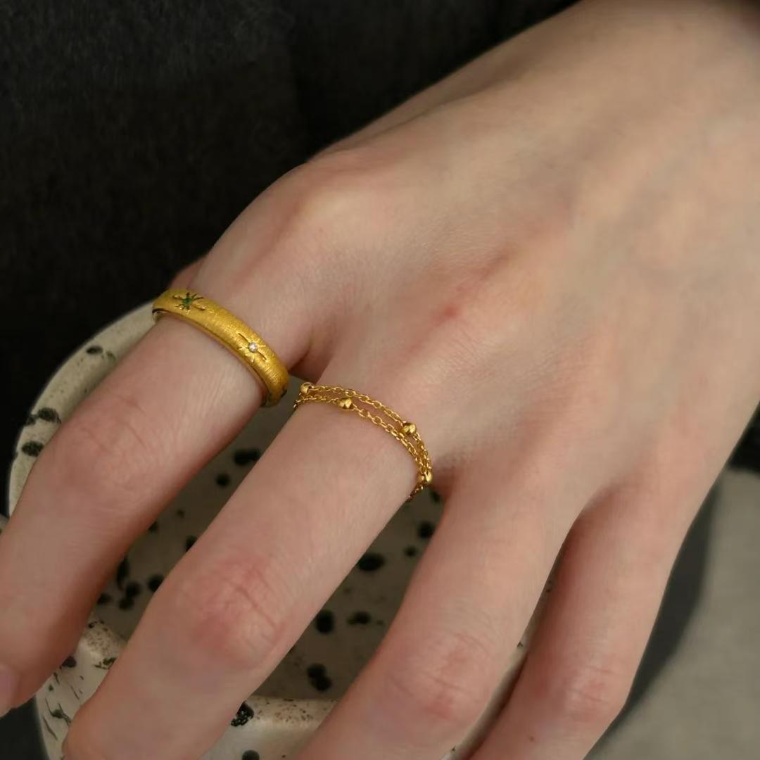 小红书爆款双层素链戒指中古冷淡风叠戴小金珠链条指环一件代发