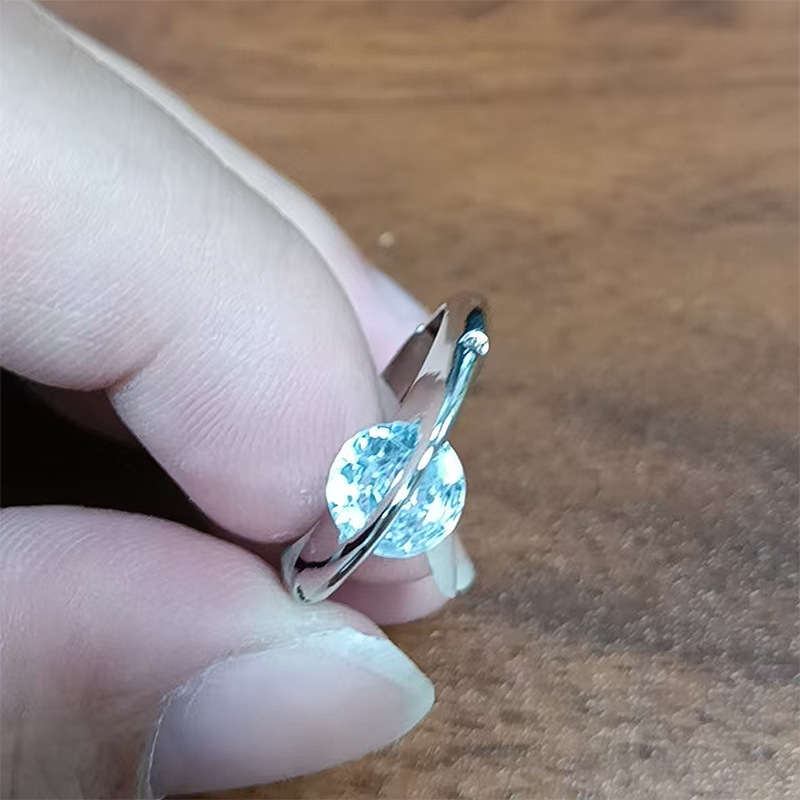 小红书同款灵动环绕星球戒指哑银可转动开口指环微镶锆石