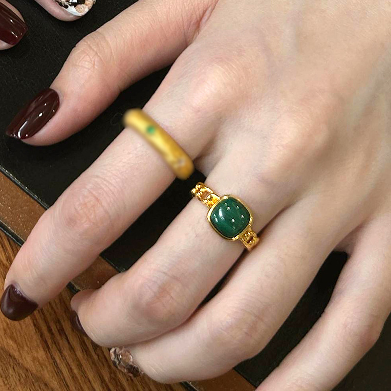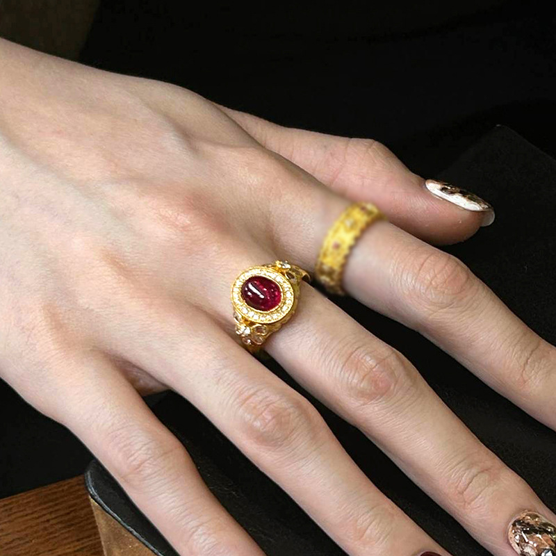 小红书同款祖母绿方糖玉髓戒指时尚轻奢满钻爆闪鸽血红宝玛瑙指环