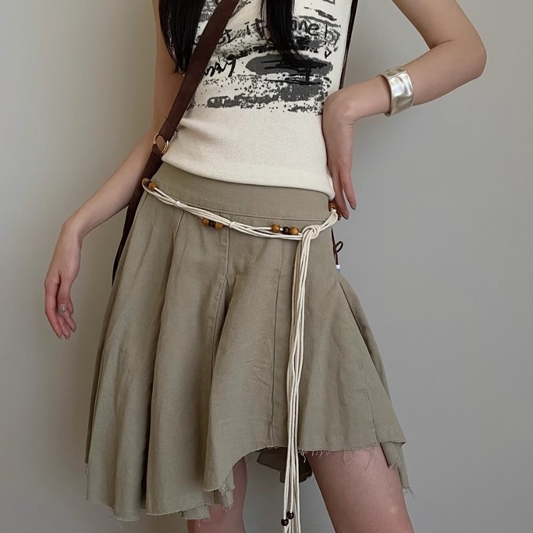全新款工装大摆长裙两件套法式白色领女装夏季新款小个子套装