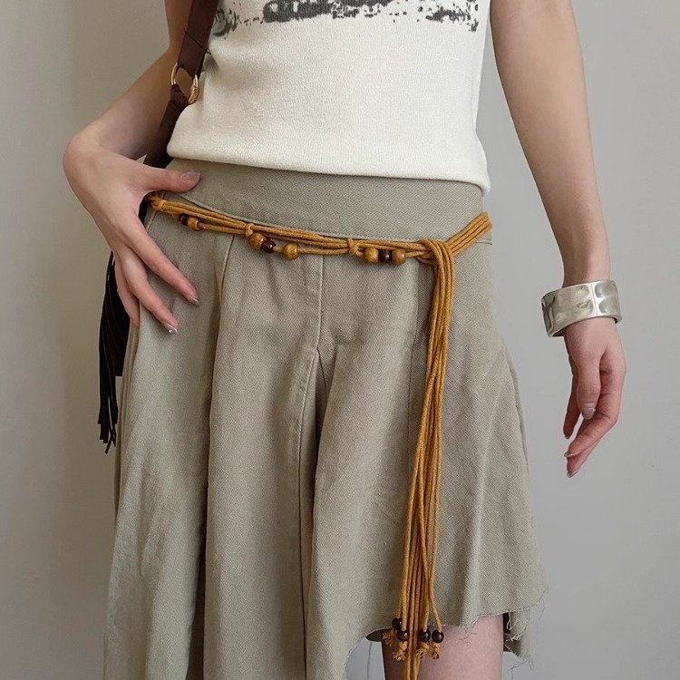 波西米亚民族风黑色编织腰绳女配连衣裙子性感系带腰带y2k腰链潮