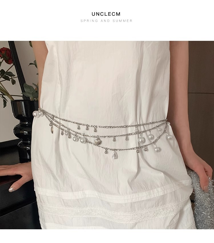 珍珠设计感波西米亚风金属腰链女高级感百搭装饰配连衣裙子腰带绳