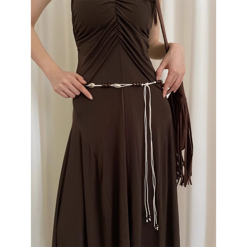 波西米亚复古民族风腰绳女编织贝壳串珠设计感腰带裙子连衣裙配饰