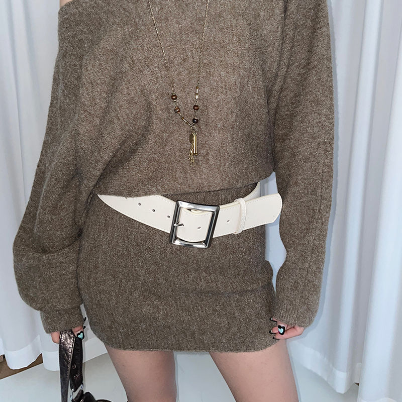 春夏新款韩版女士宽腰带反绒仿麂皮绒方形针扣皮带腰封配大衣简约