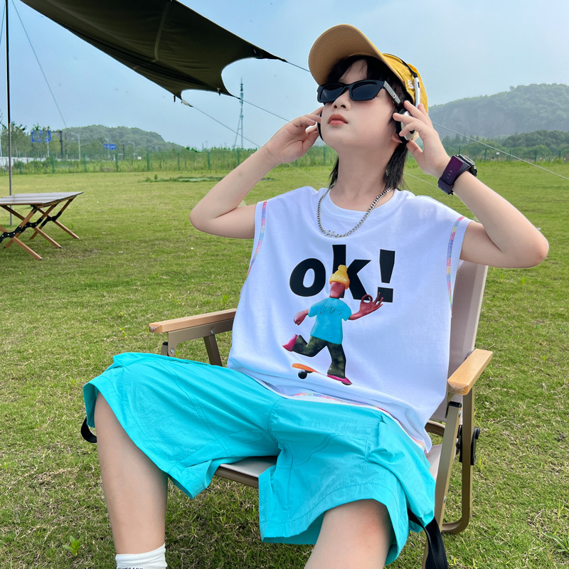 夏季中大男童背心套装新款童装儿童男孩短裤无袖两件套个性时髦潮
