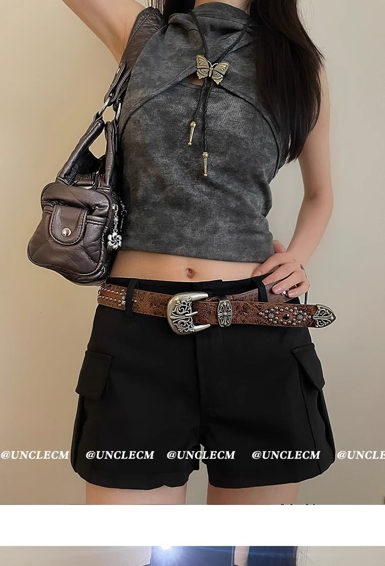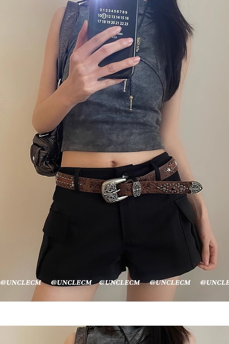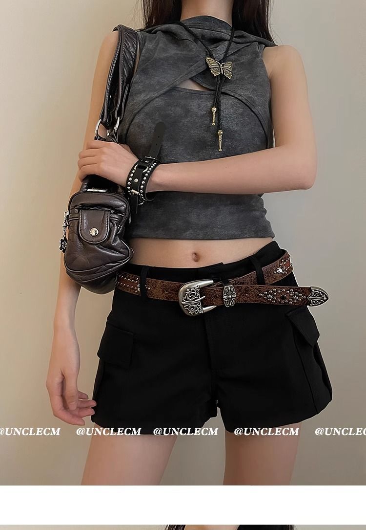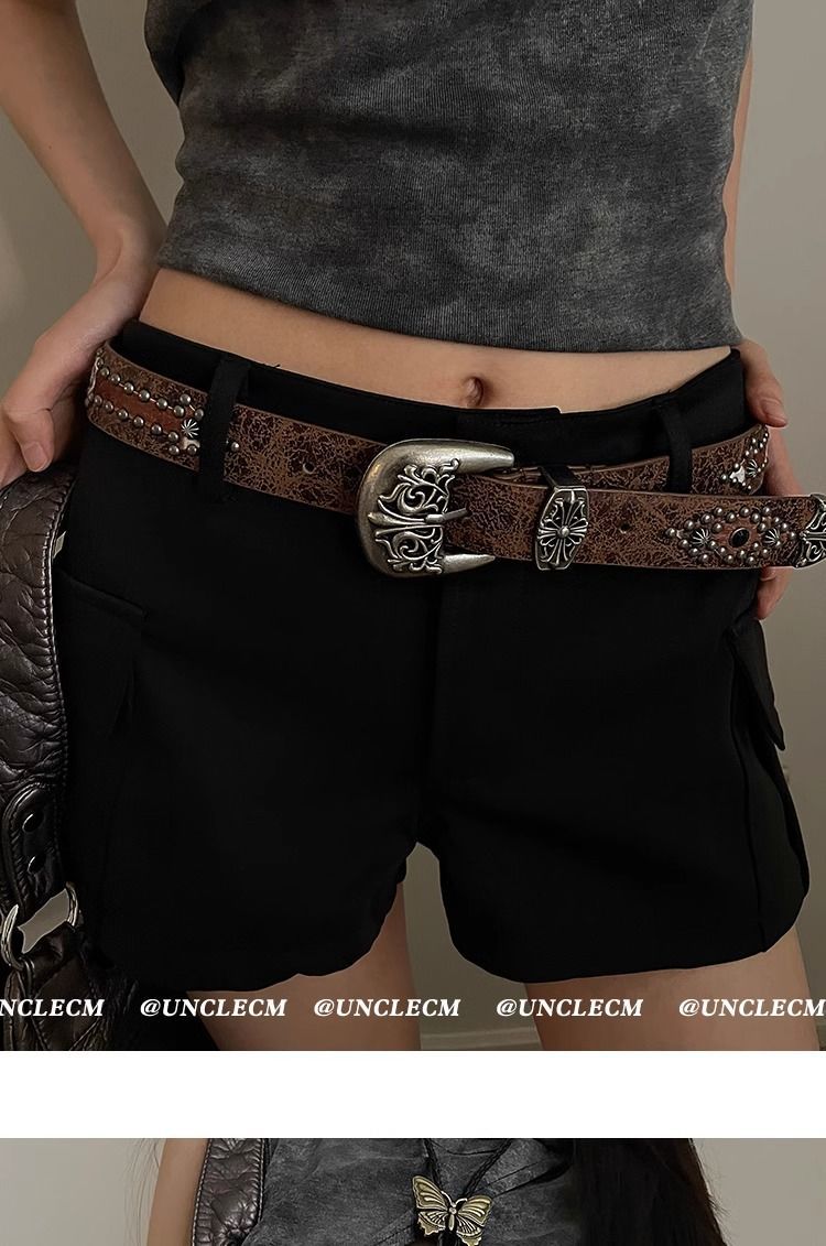 复古棕色铆钉腰带女韩版时尚百搭新款牛仔裤配饰高级感显瘦皮带潮