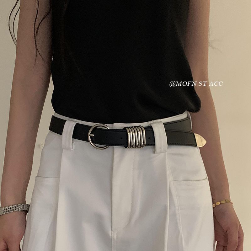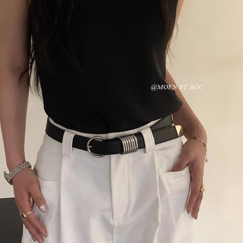 高级感设计师款环扣腰带新款小众男女同款百搭黑色皮带