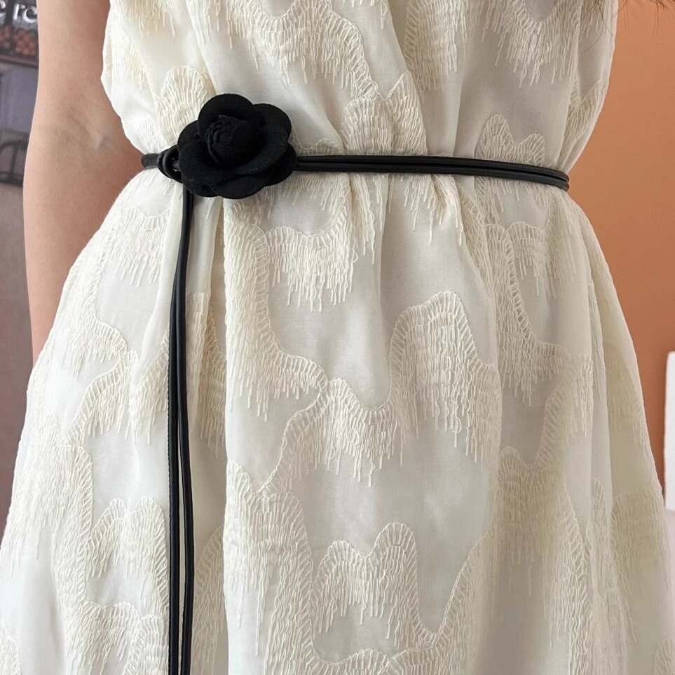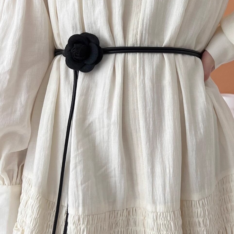 简约花朵皮绳百搭细腰带连衣裙装饰皮带百搭打结女款韩版裙子腰绳
