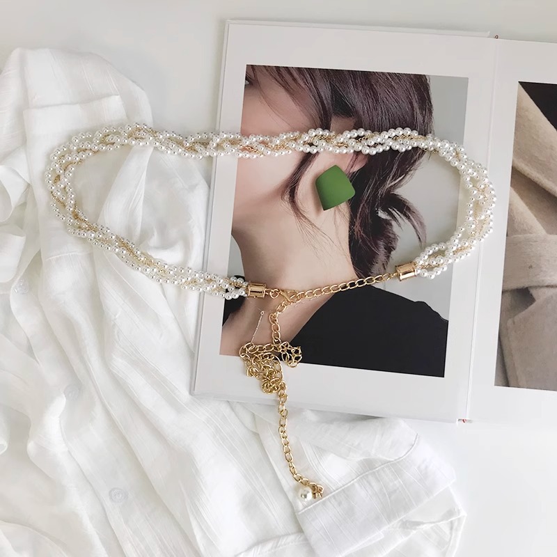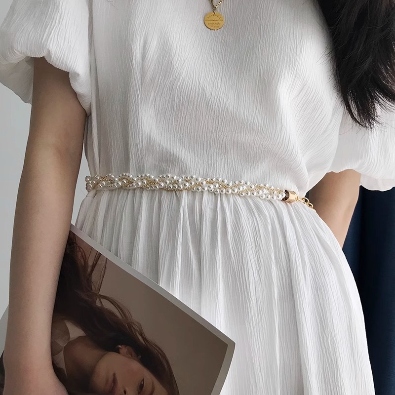 韩国新款夏季吊坠珍珠腰链女配连衣裙装饰细腰带ins简约百搭裙带