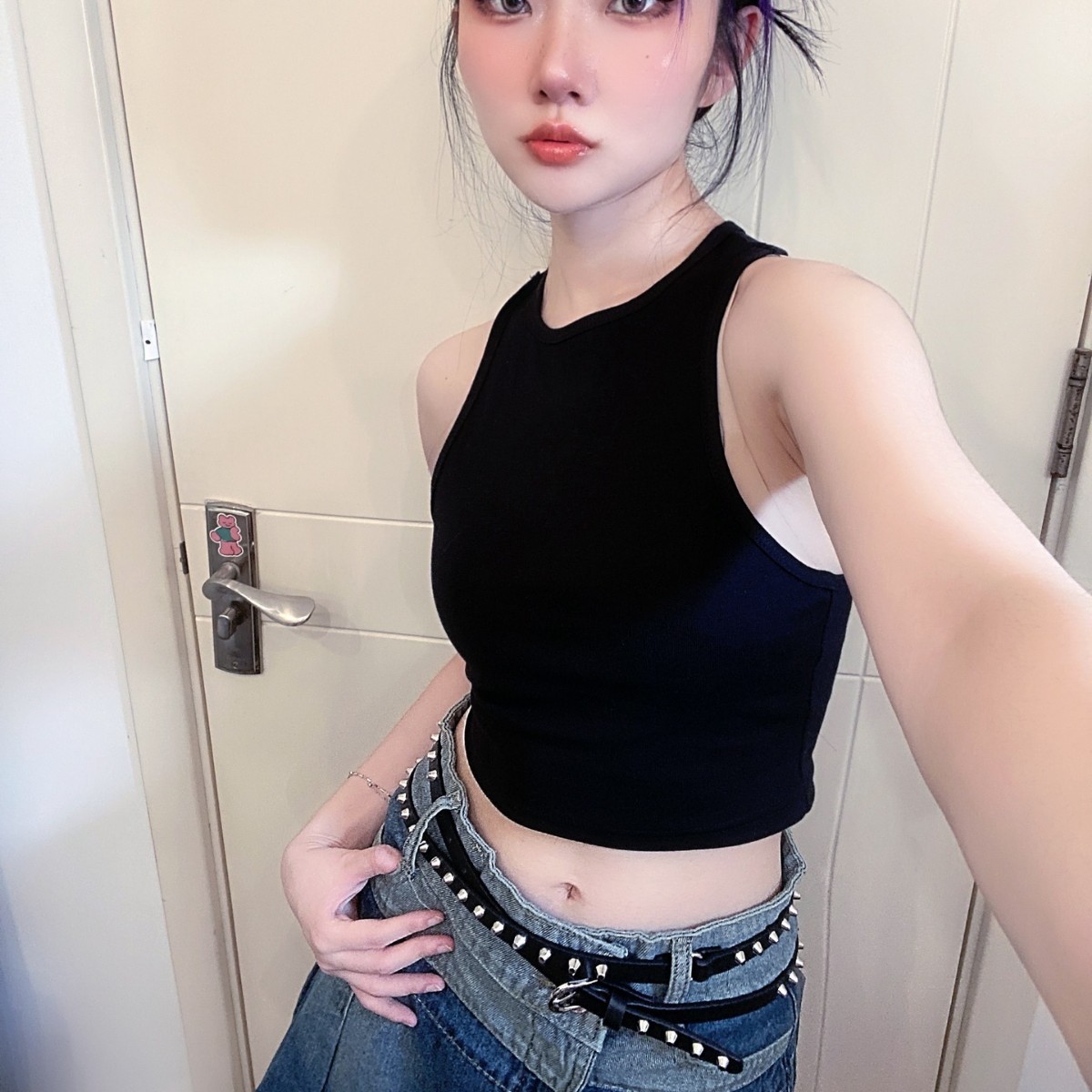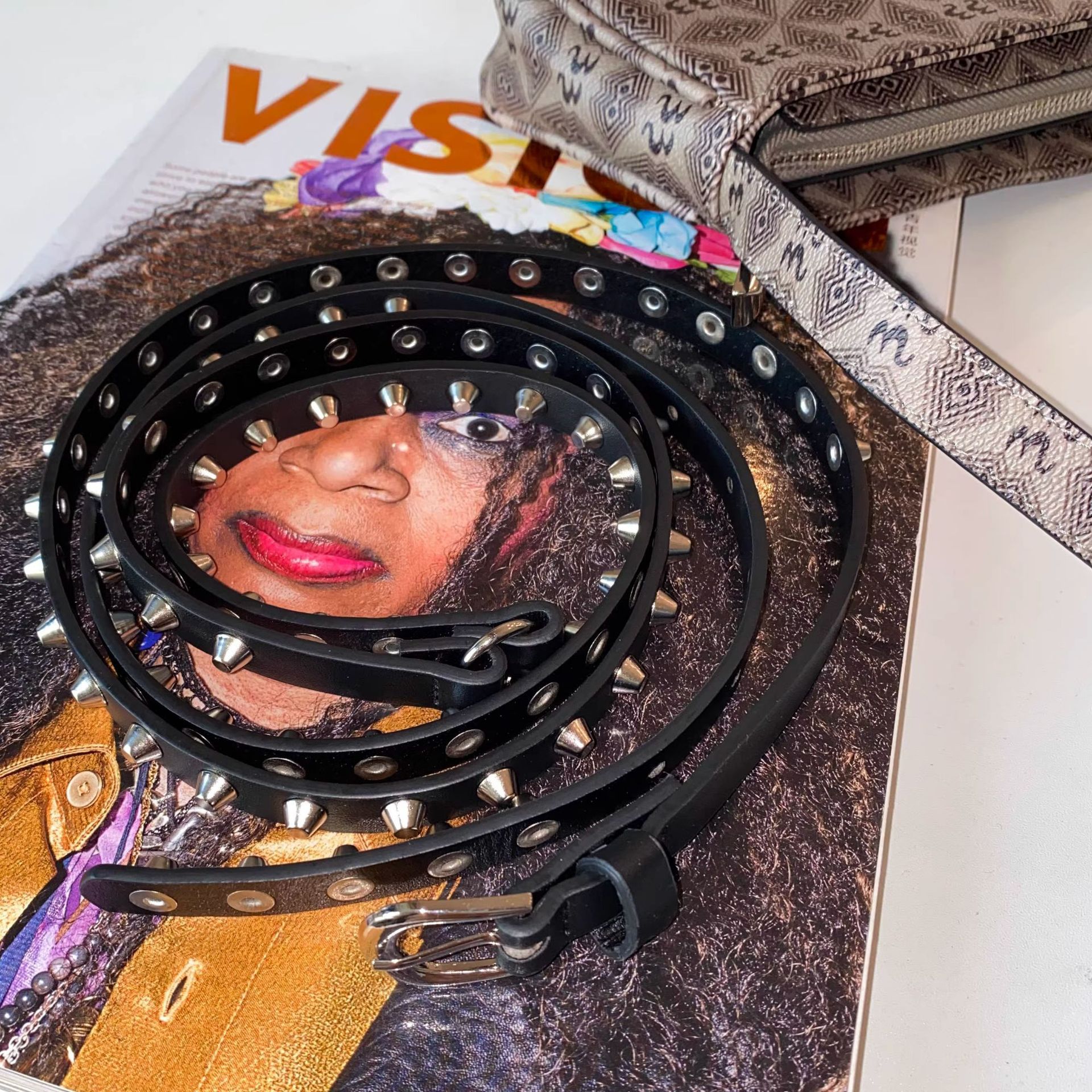 美式辣妹朋克金属扣铆钉黑色腰带亚文化千禧y2k暗黑双层细皮带