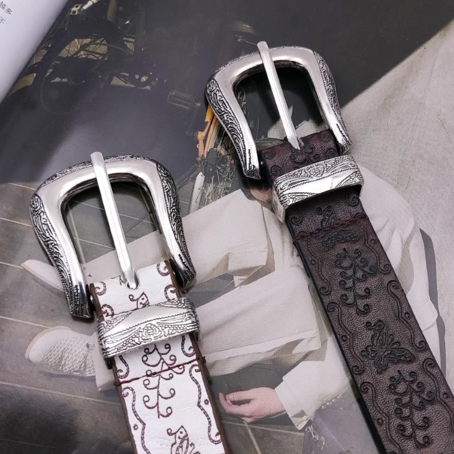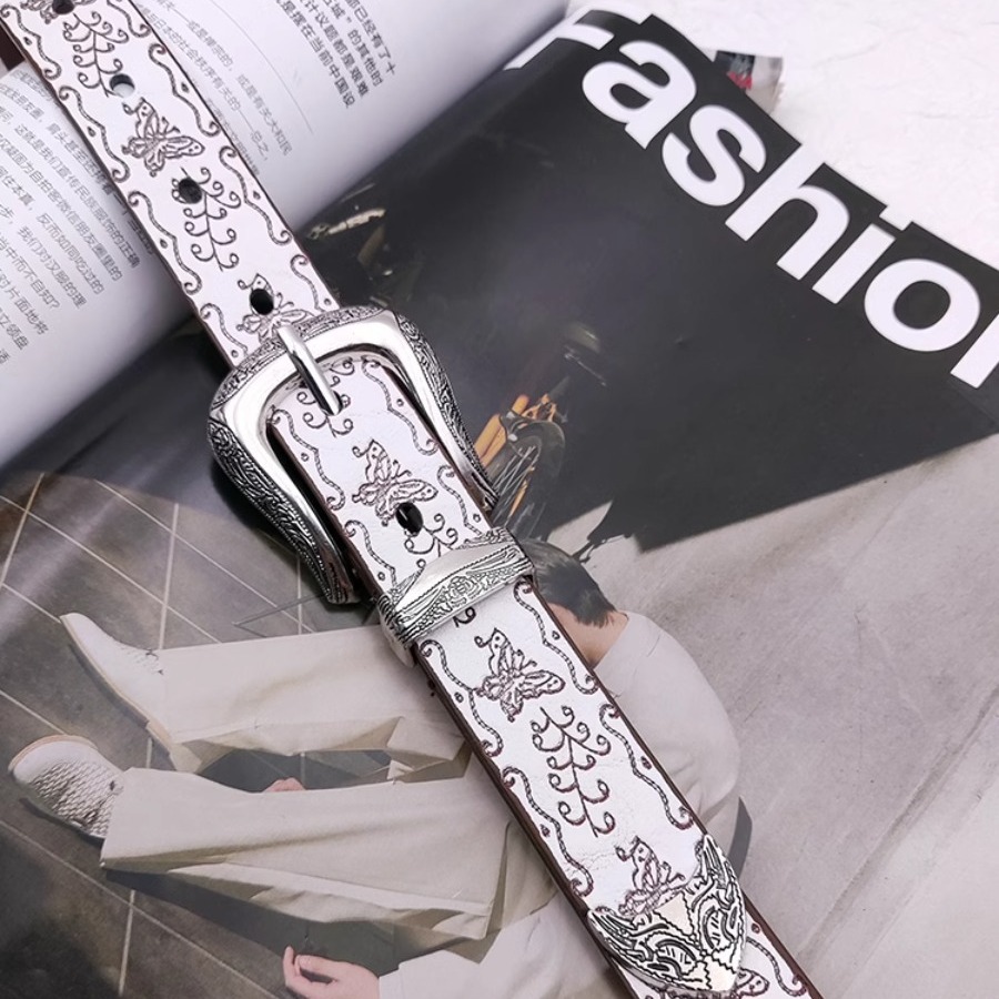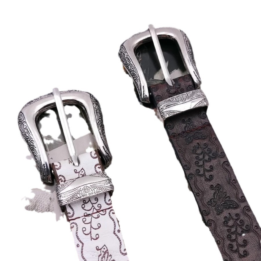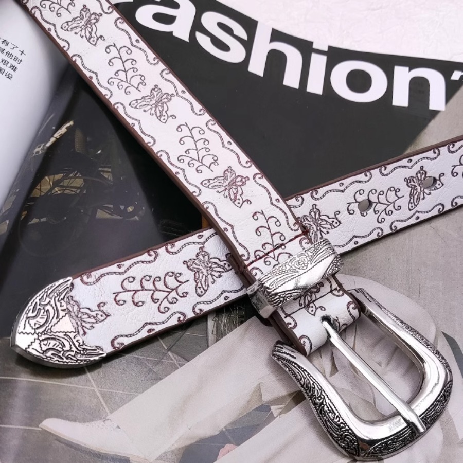 美式压花复古y2k白色腰带女新款搭配配饰裤带皮带设计感小众
