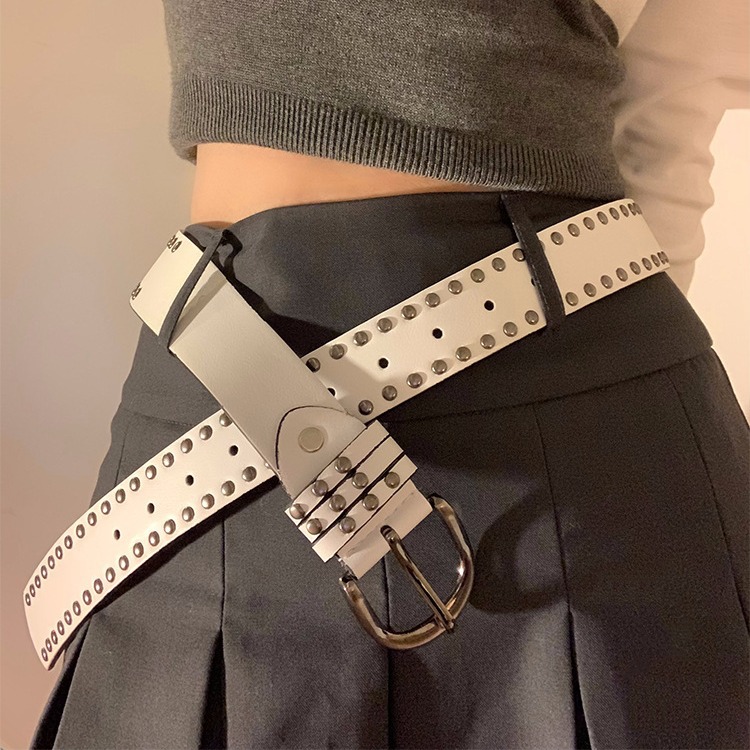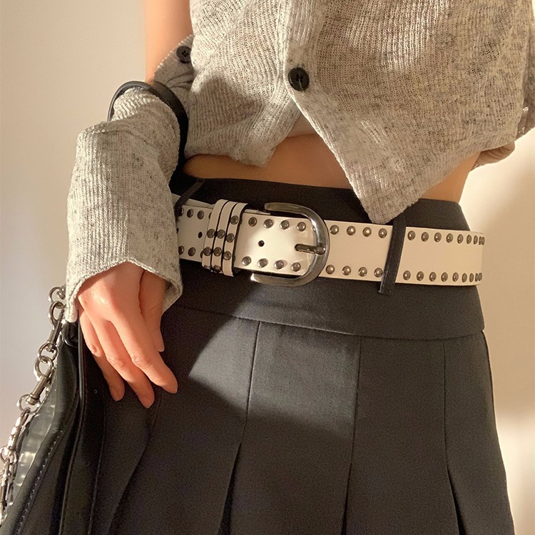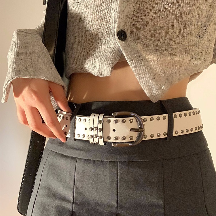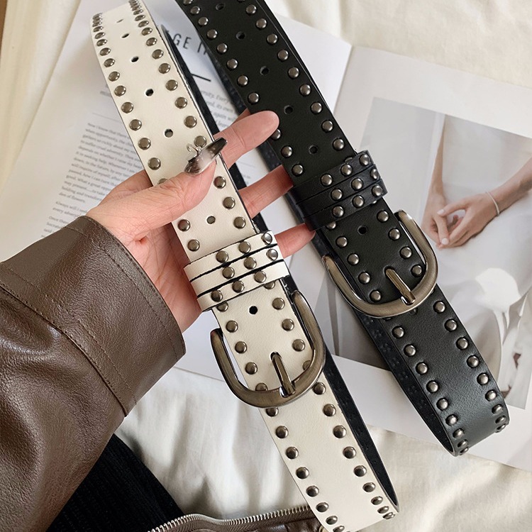 韩版港风复古纯色个性朋克风铆钉腰带女春夏个性百搭高级感皮带潮