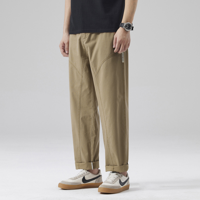 美式复古纯棉休闲裤男士春季宽松垂感阔腿直筒裤潮牌痞帅工装裤子