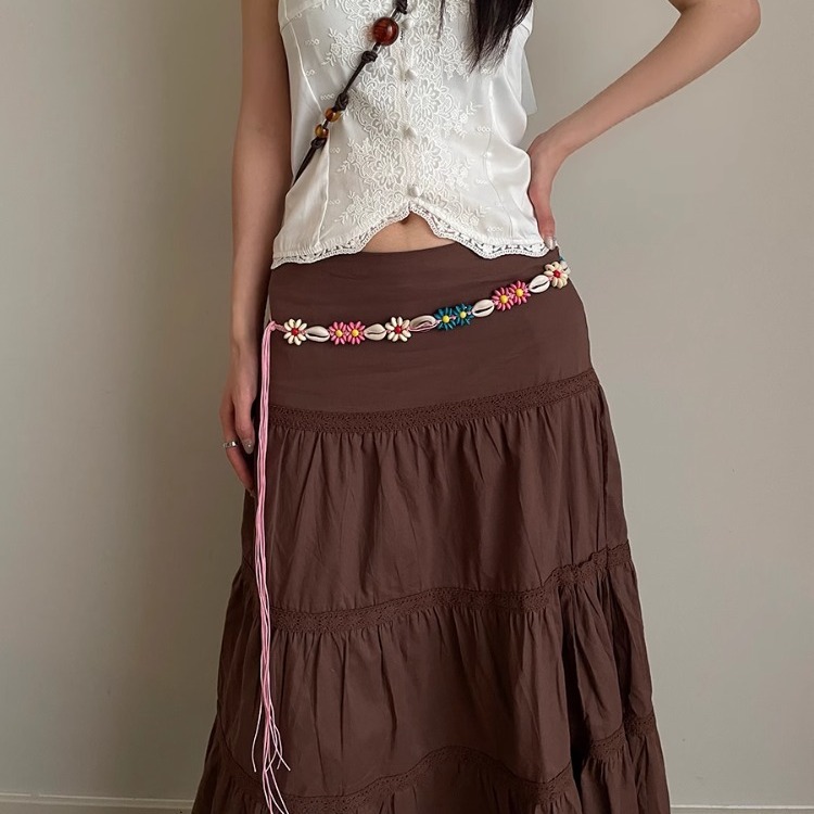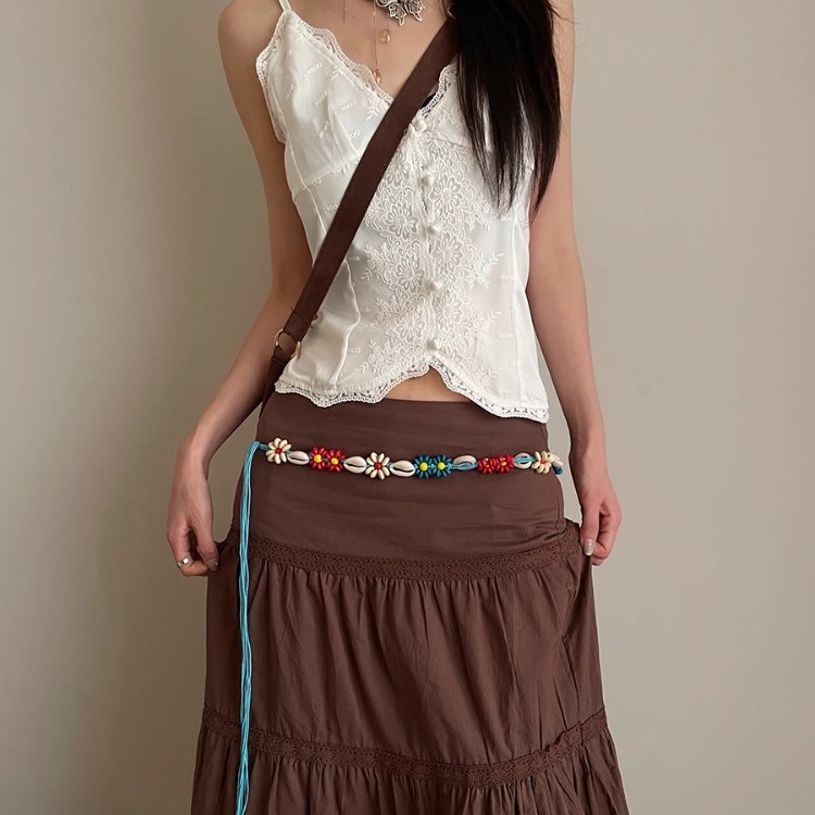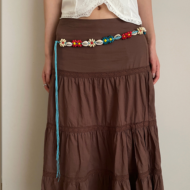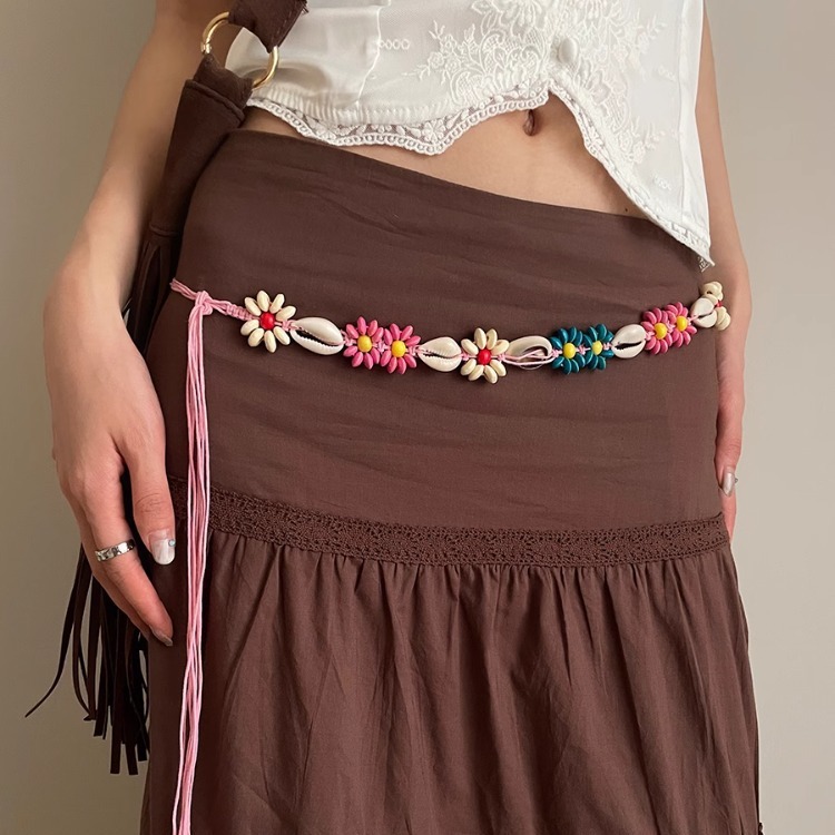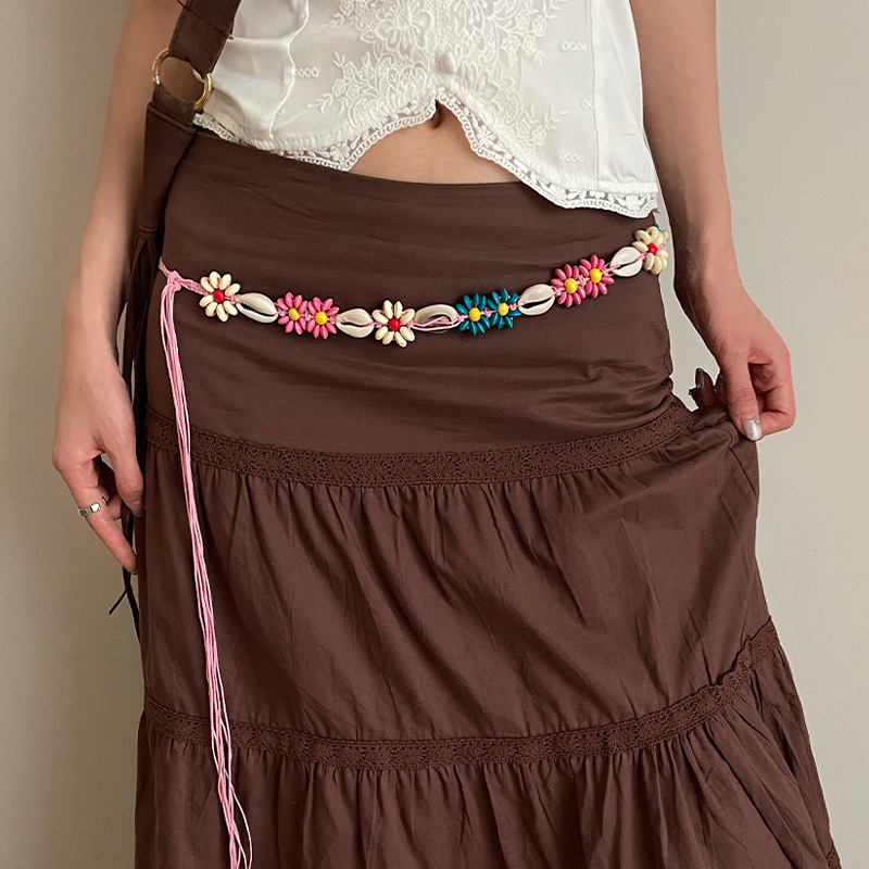 波西米亚花朵彩色编织腰绳民族风女配连衣裙子系带腰链y2k细腰带
