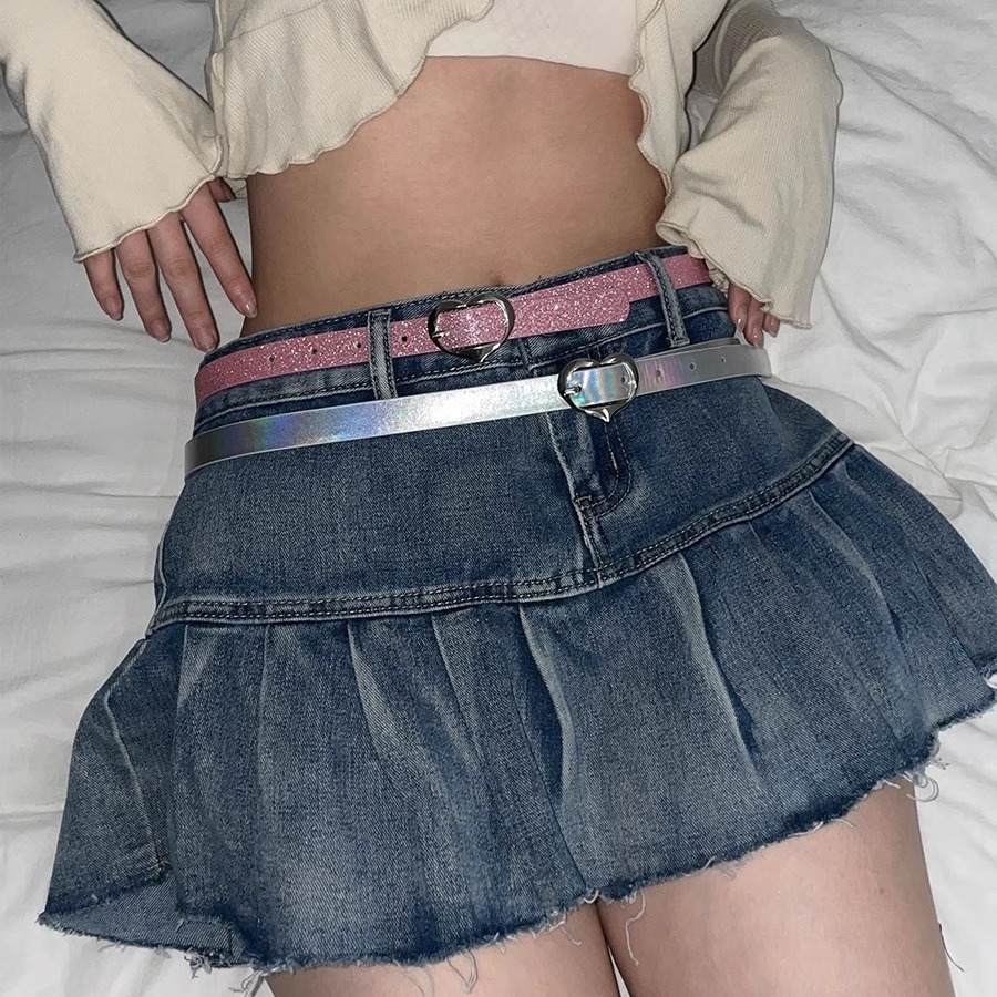 y2k细腰带粉色心形装饰千禧辣妹风亚文化皮带女新款韩版百搭