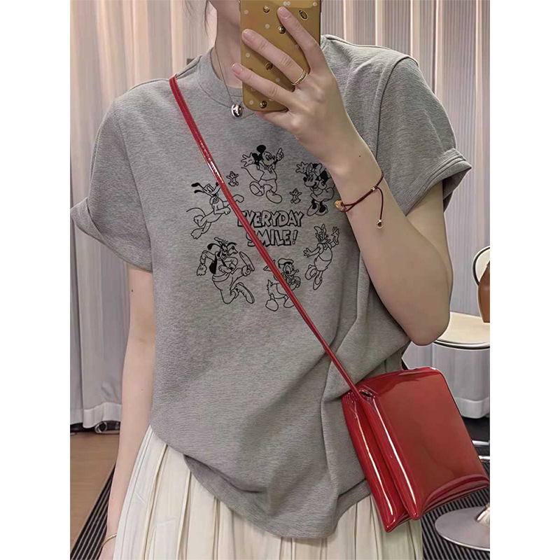 2025新款正肩纯棉短袖t恤女装时尚百搭设计感小众灰色上衣夏季潮