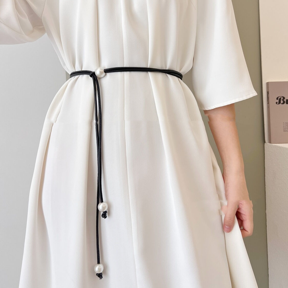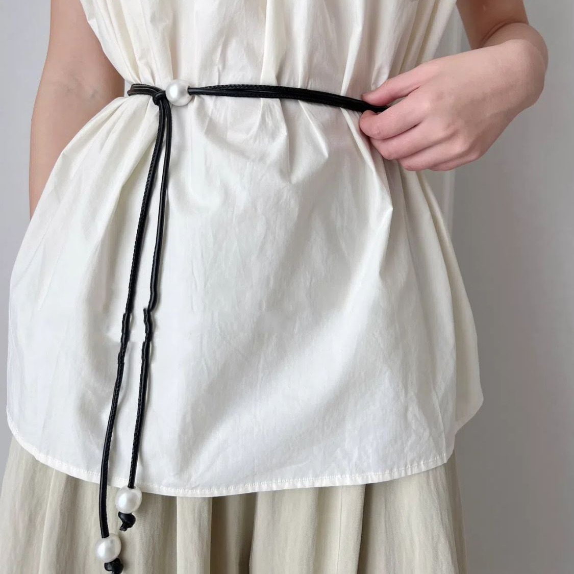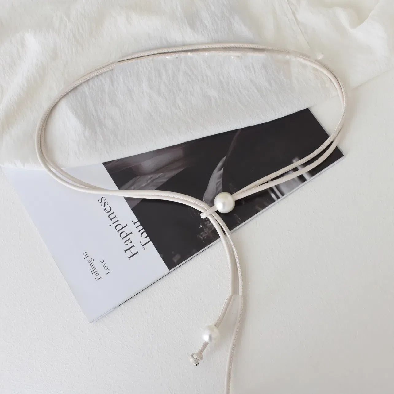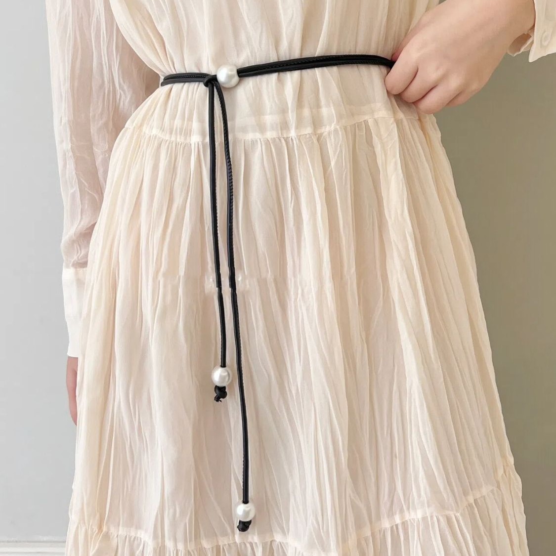 夏季新款珍珠细腰绳百搭配裙子腰带女款时尚穿搭配饰简约风格设计