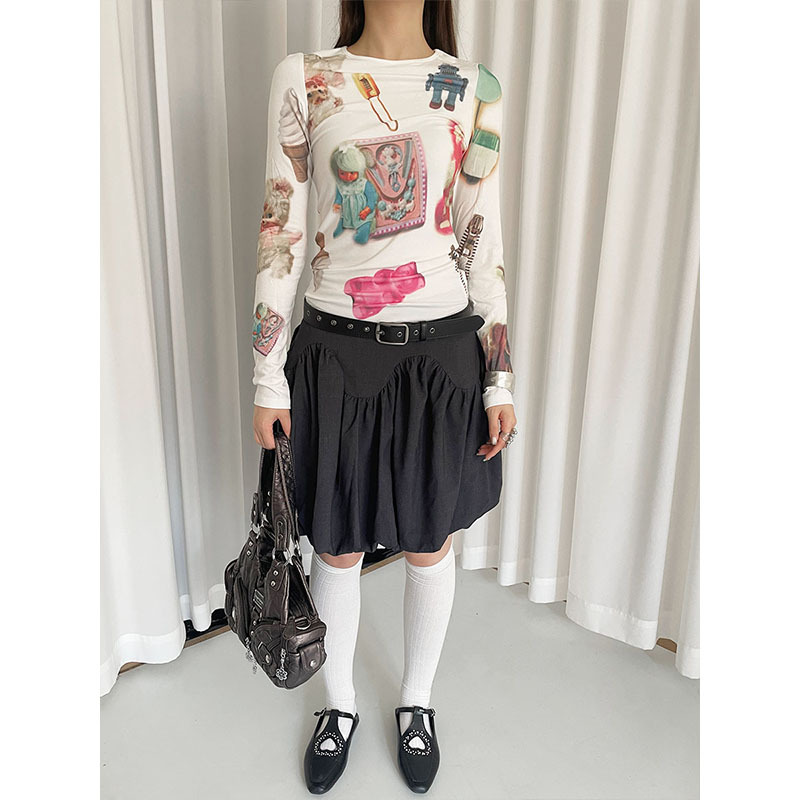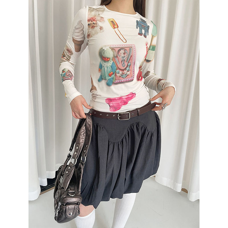 新款复古花卉印花挂脖小吊带女辣妹修身镂空系带针织上衣