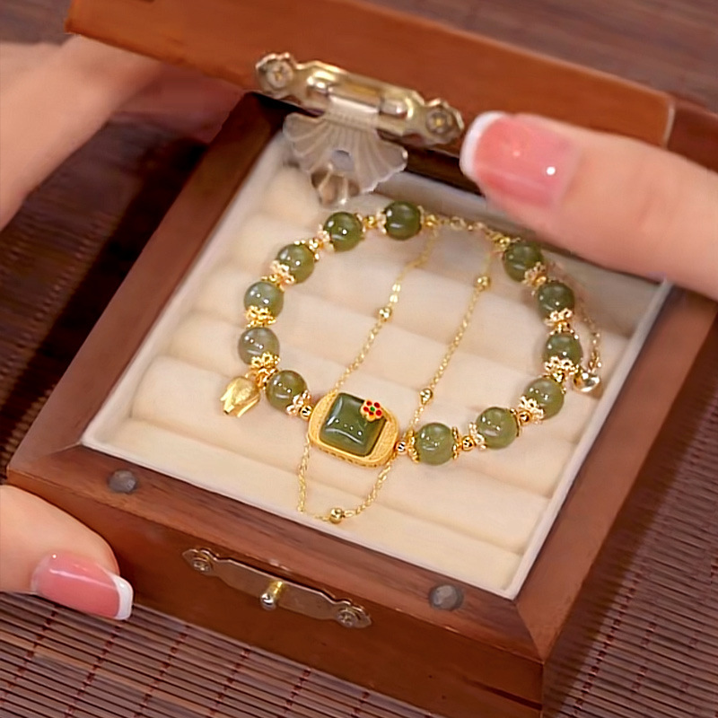 高级感方糖莲花双层手链女玉髓珠子小众设计气质手串