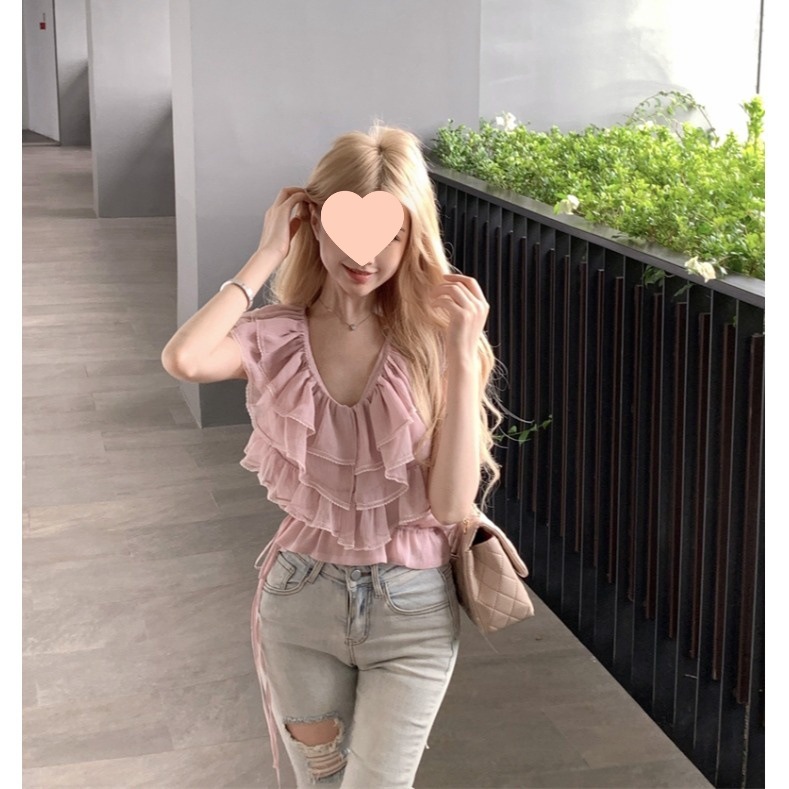 荷叶边肌理感雪纺衫花边衬衫上衣夏季新款法式心机洋气女装粉