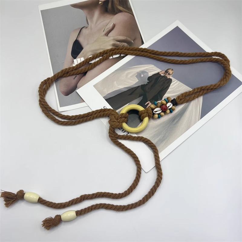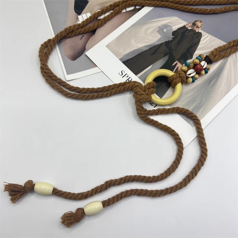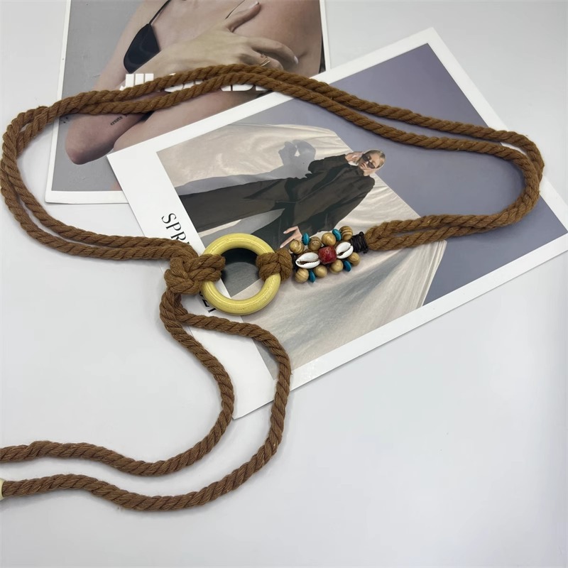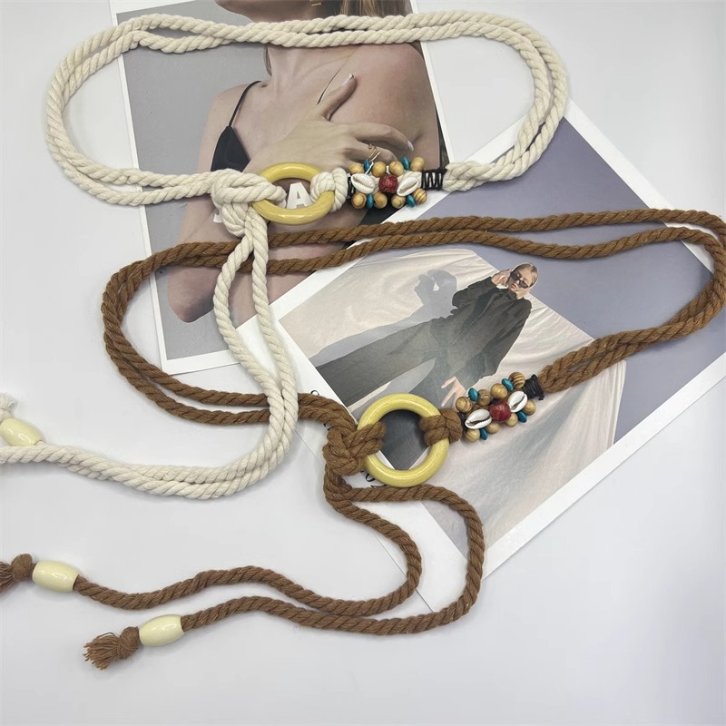 波西米亚米白色编织麻绳腰带女夏季百搭个性装饰腰封女士细ins潮