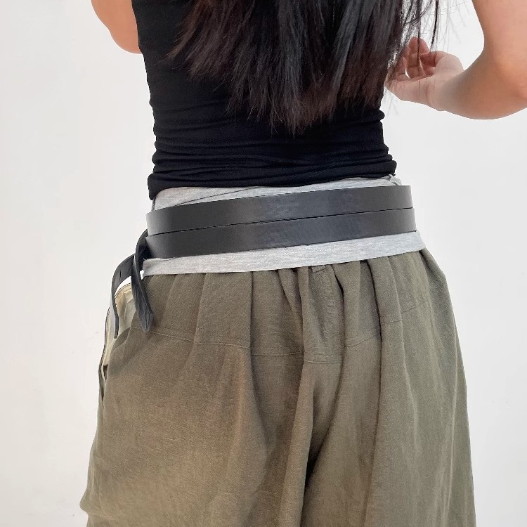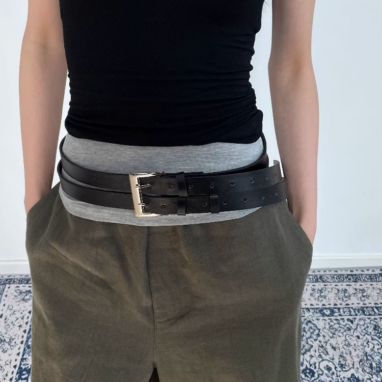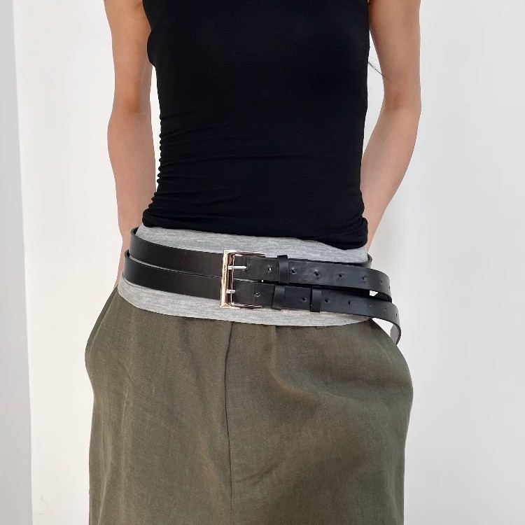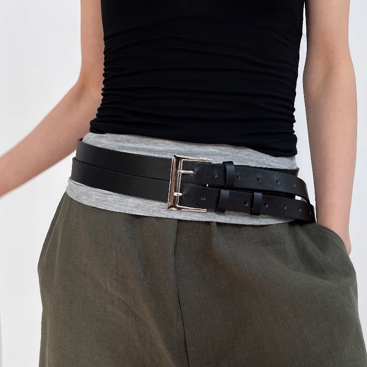 小众设计感简约时髦双层黑色腰带潮酷百搭朋克风个性双排束腰皮带