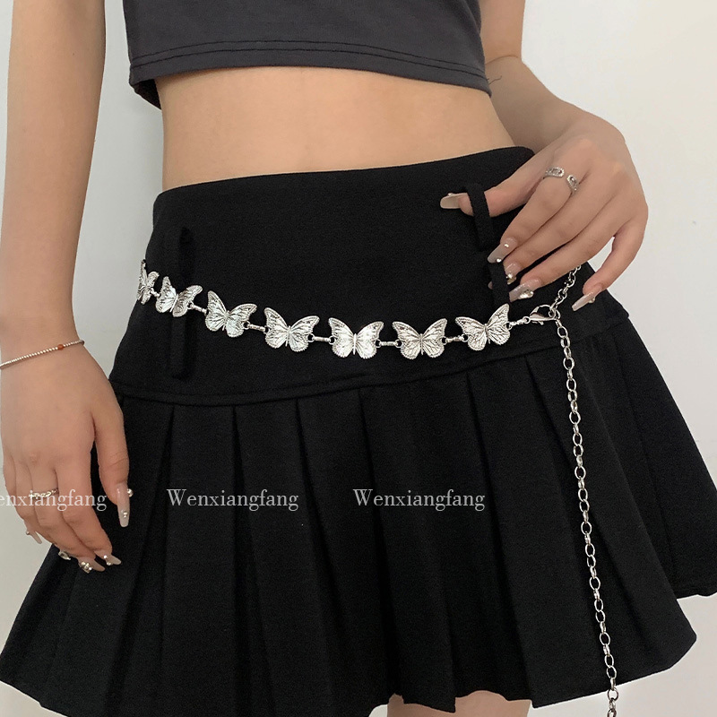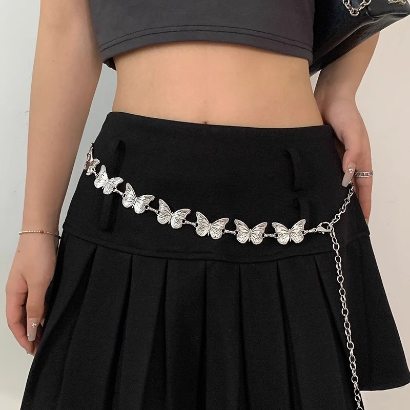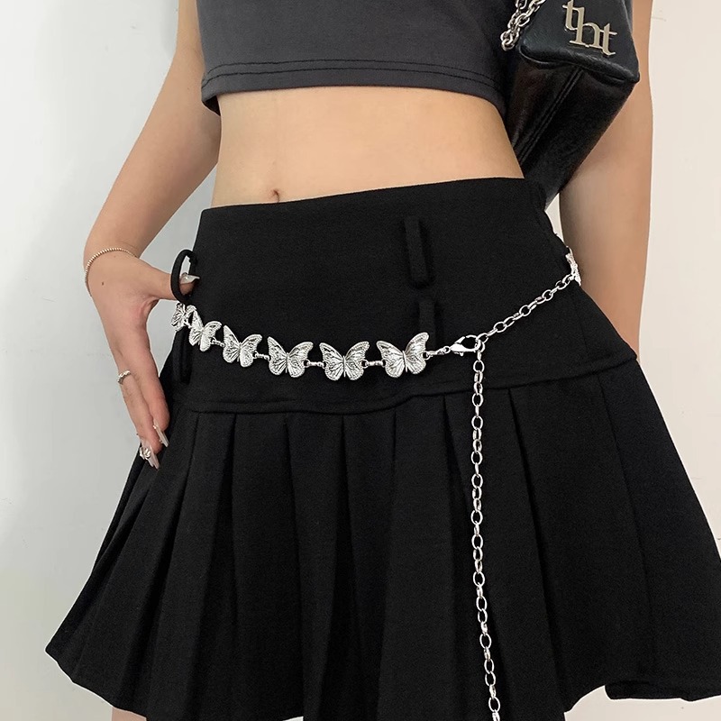 蝴蝶结金属裤腰链小众设计感y2k高级感银色链条女配饰链子百搭