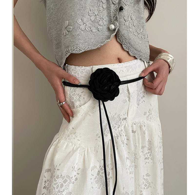 高级感山茶花腰绳女设计感金属爱心腰链2025新款裙子配饰百搭腰带