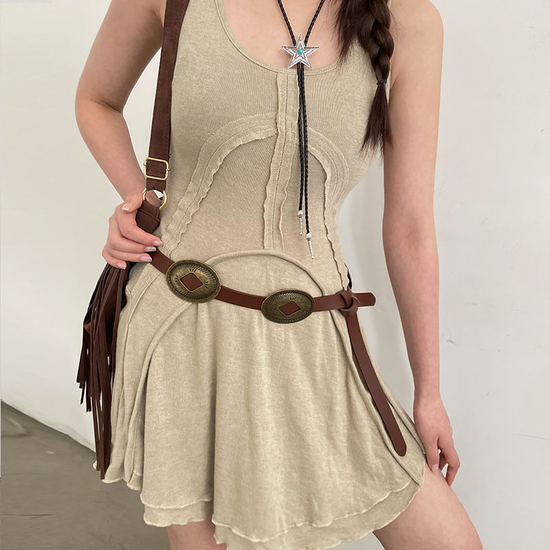 美式复古腰带女棕色新款夏季细皮带百搭配牛仔裤带ins高级感