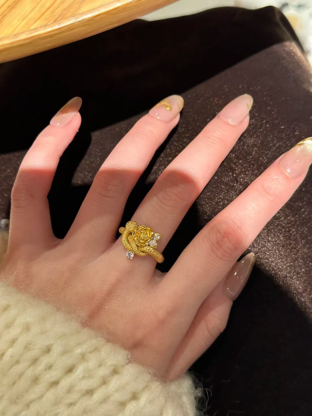 小红书爆款玫瑰灵蛇缠绕戒指古法重工生肖蛇形本命年指环