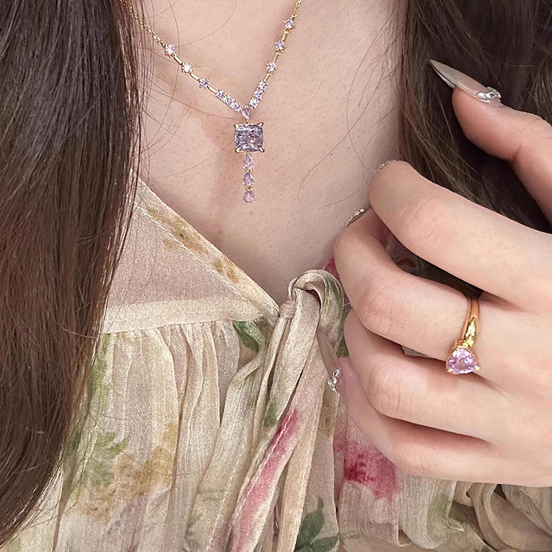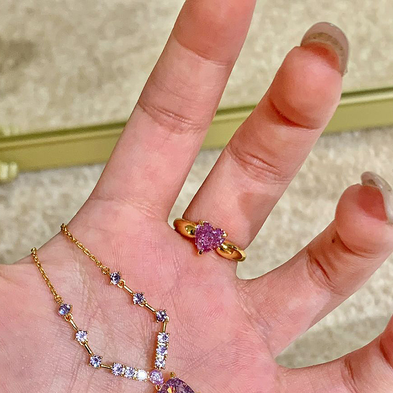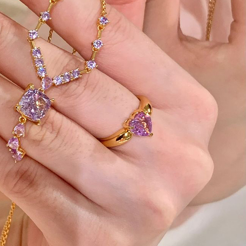 小红书爆款九紫离火戒女紫霞仙子紫色爱心宝石超闪精致心形指环