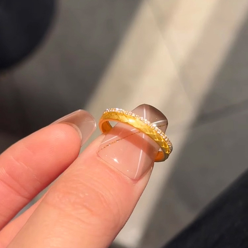 小红书爆款穗羽流光排钻戒指在逃公主扭曲菱形宽面指环
