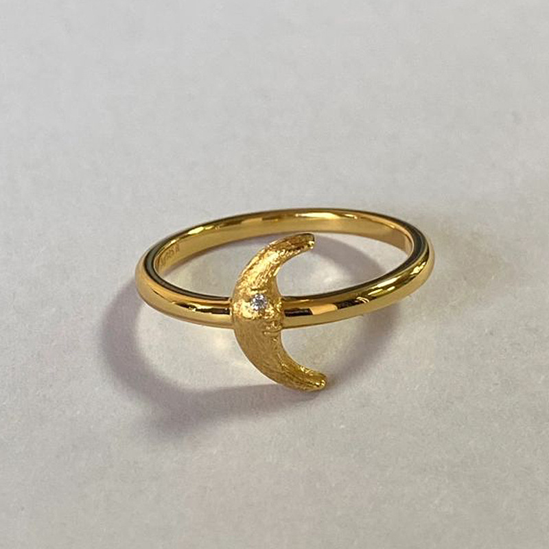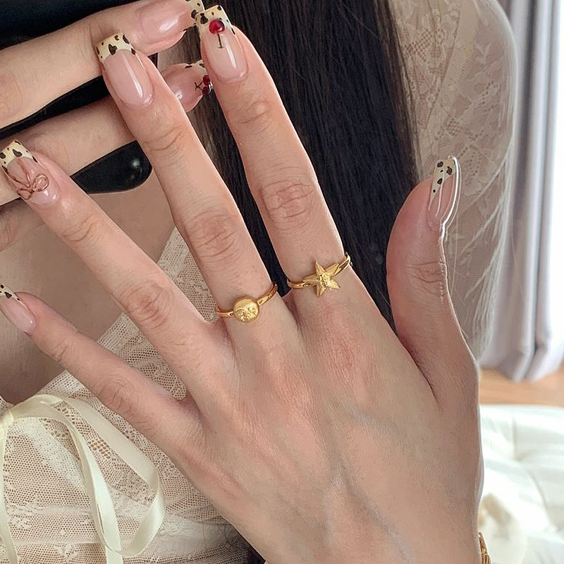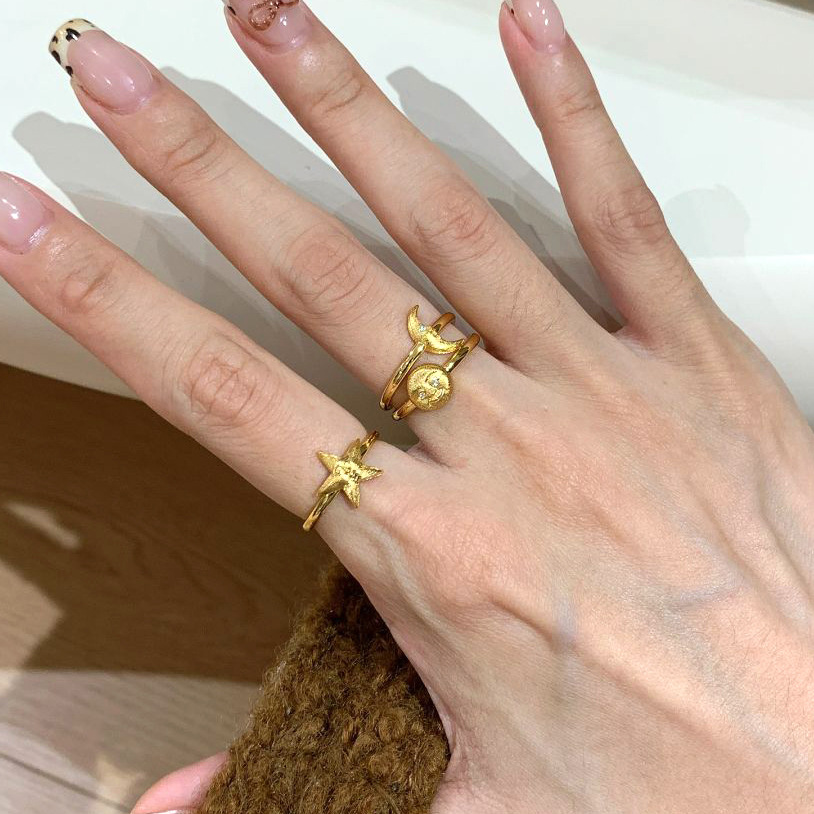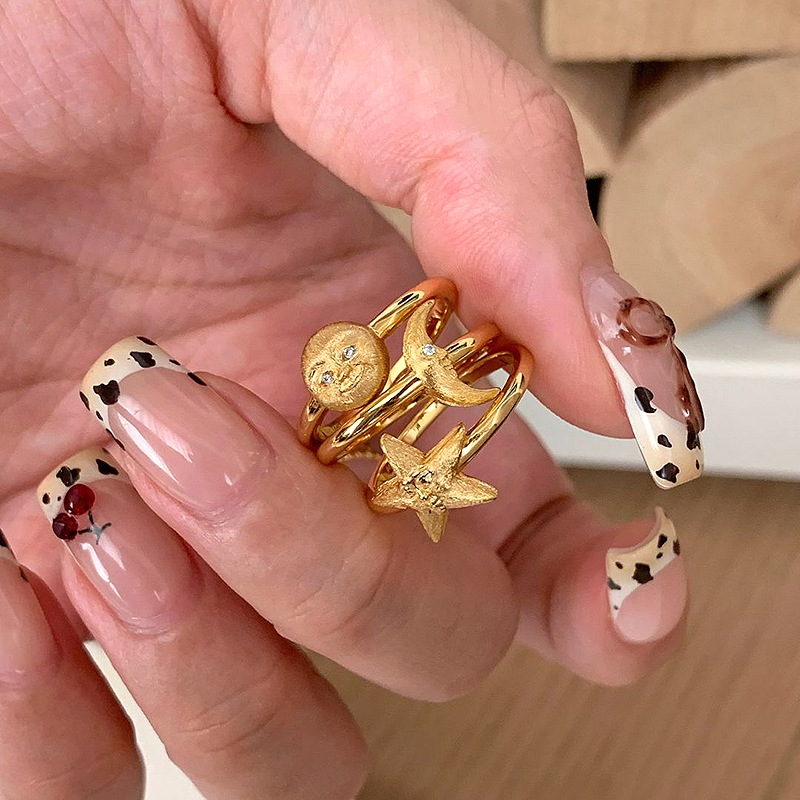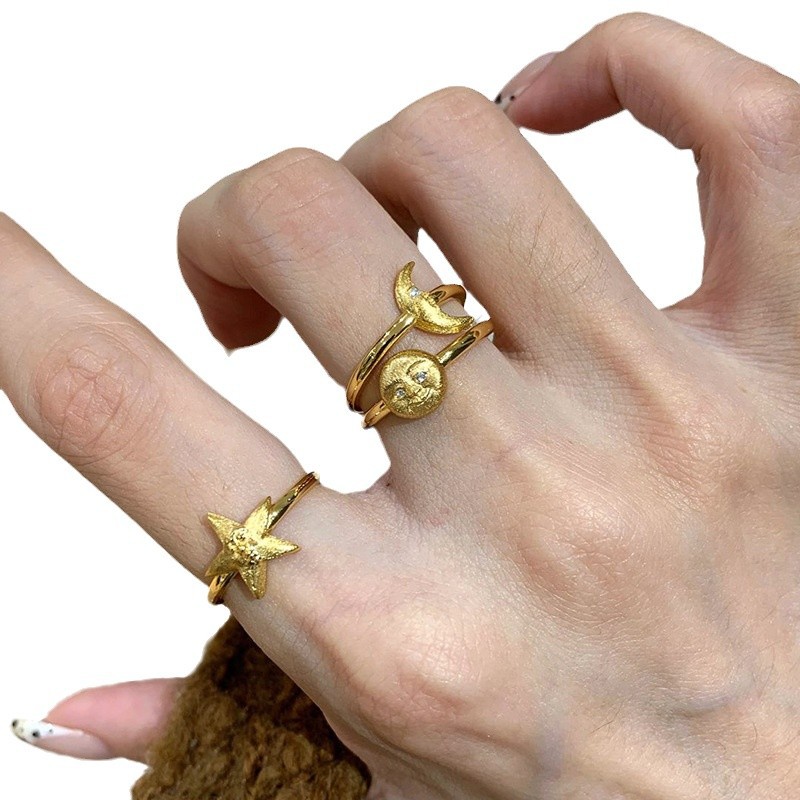 小红书爆款日月星辰戒女中古拉丝日月星戒指卡通太阳月亮星星指环
