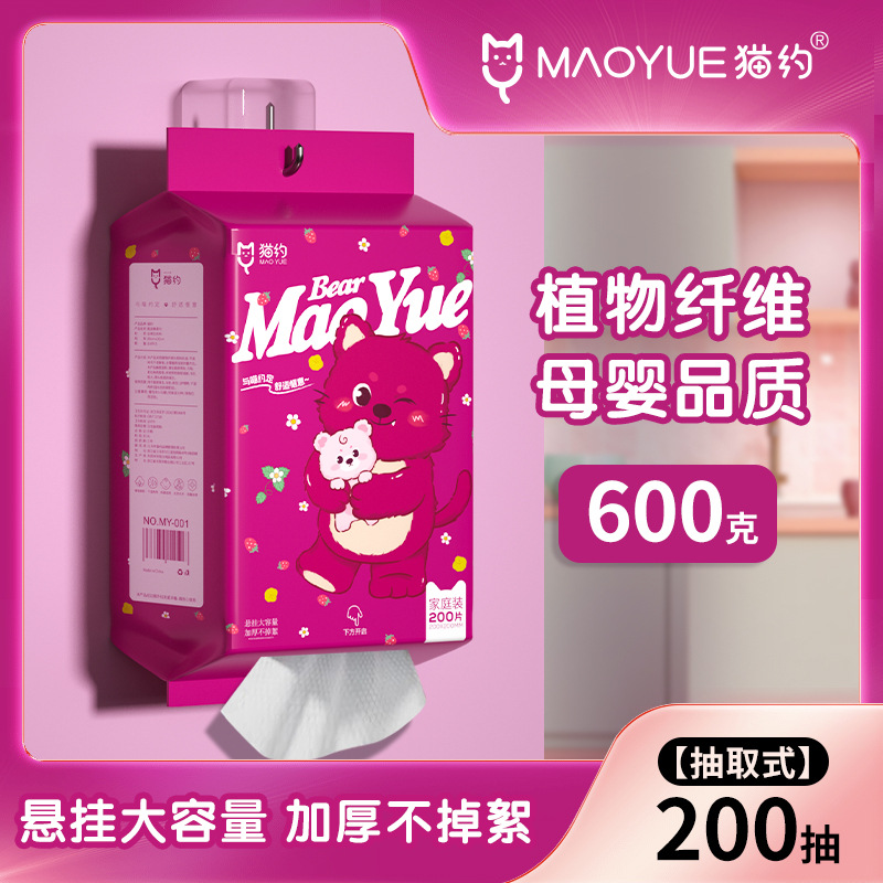 猫约600克家庭装悬挂洗脸巾一次性毛巾纯棉吸水洗面巾抽取式面巾