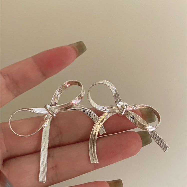 少女情书~轻奢法式复古金属链条蝴蝶结新款耳环 高级感小众设计潮