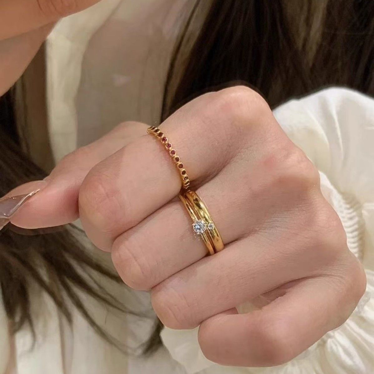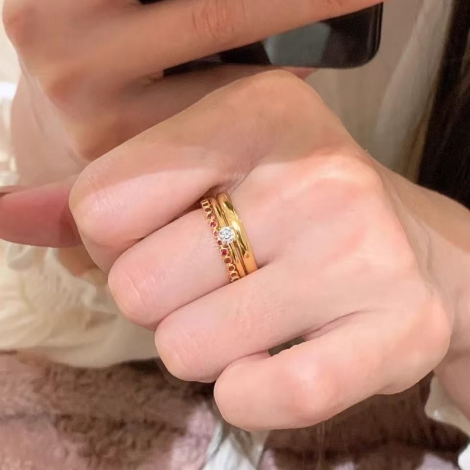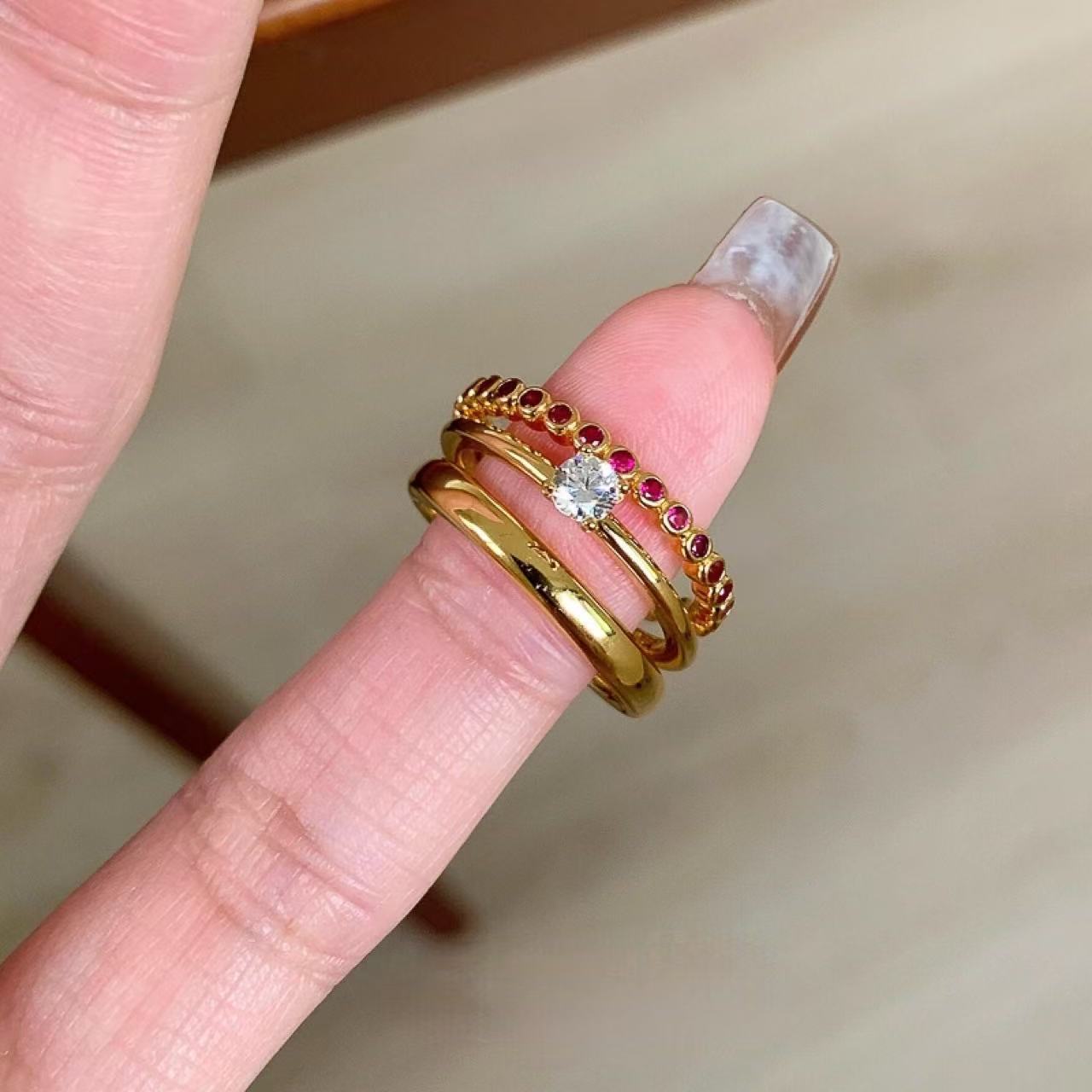 小红书同款红钻排钻戒指叠戴轻奢春夏百搭高级感精致指环