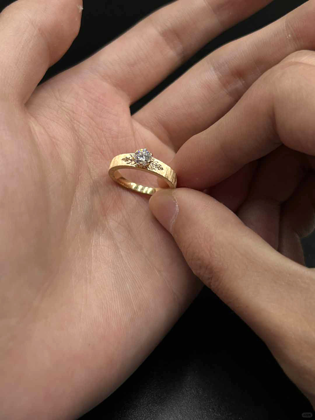 小红书爆款雕花单钻戒指2025新款布拉风格拉丝工艺爆闪轻奢指环女