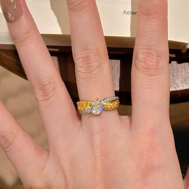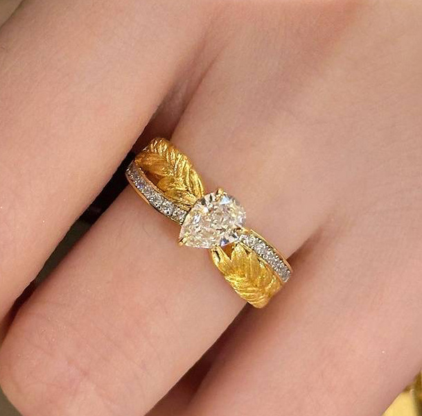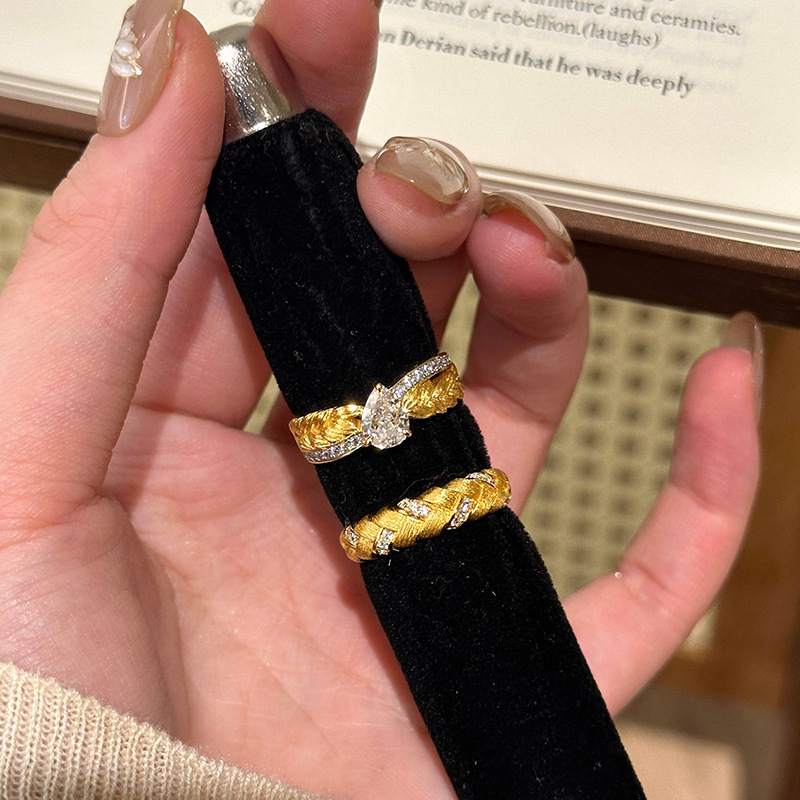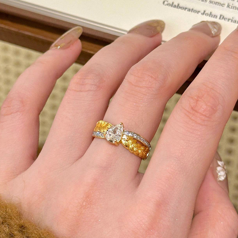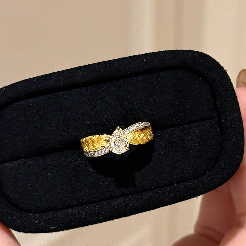 小红书爆款麦穗水滴钻戒轻奢中古拉丝梨形锆钻戒指开口戒