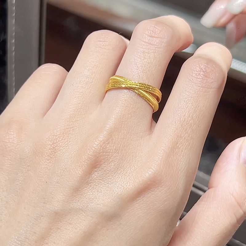 小红书新款交叉拉丝戒高颜值轻奢设计个性百搭小众时尚饰品女