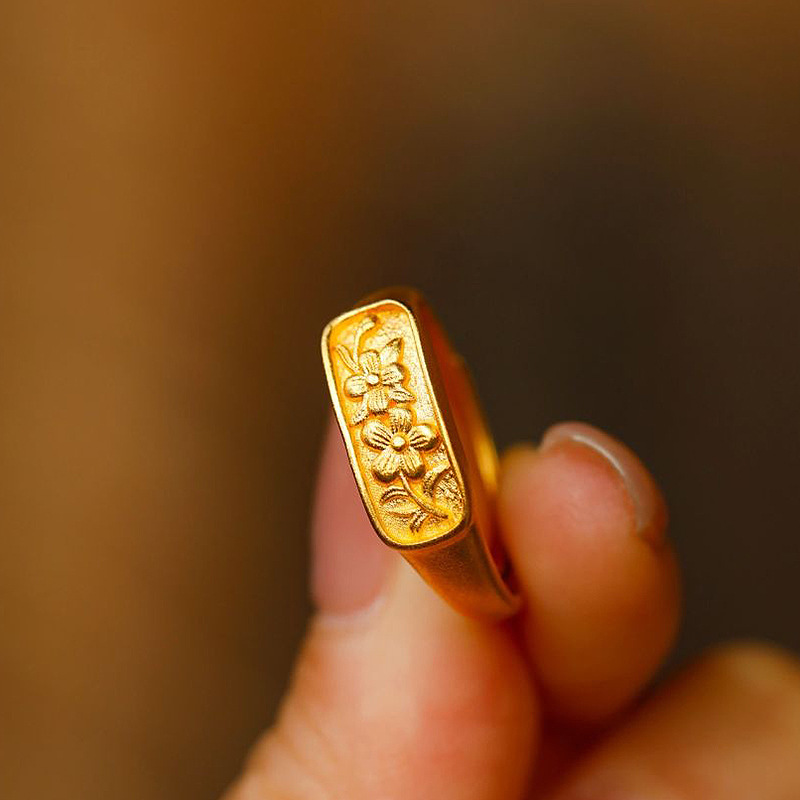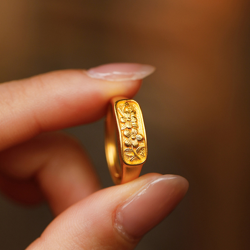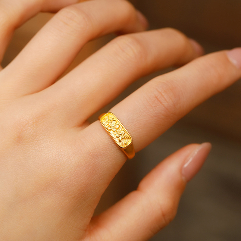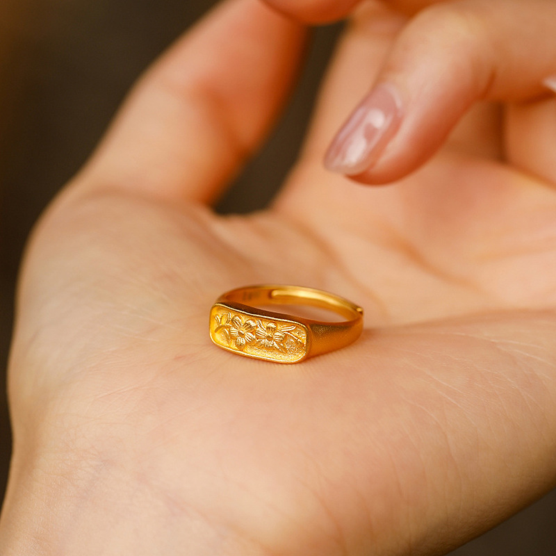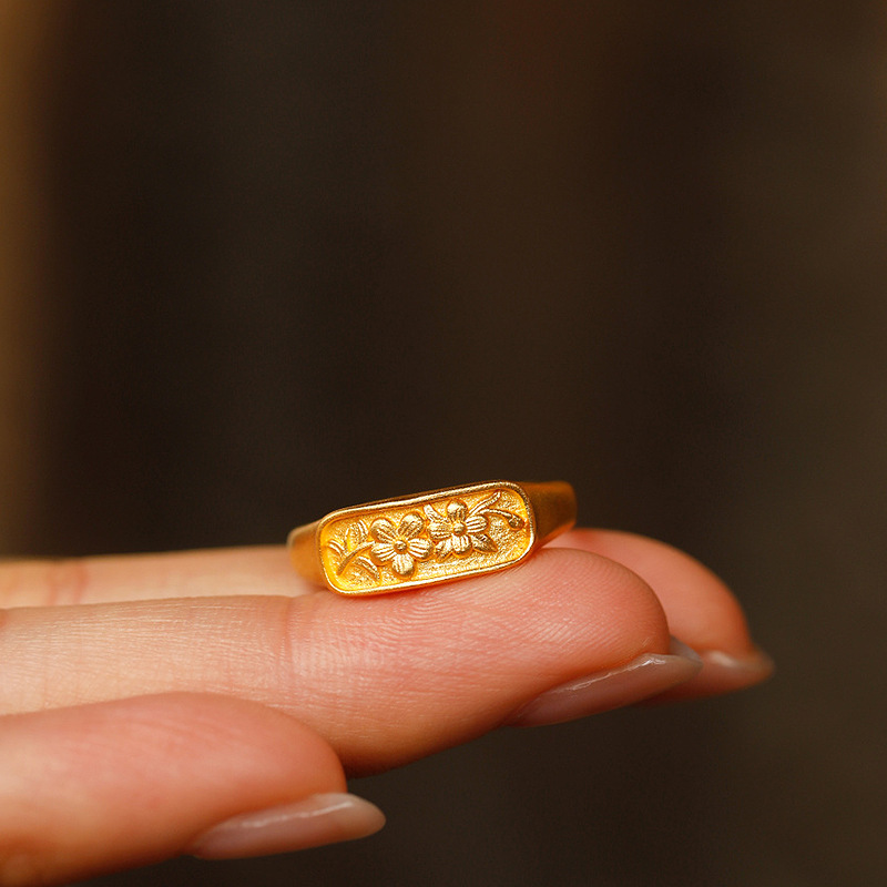 小红书爆款民国老款金戒指2025新款精致小金花梅花桂花精致指环女