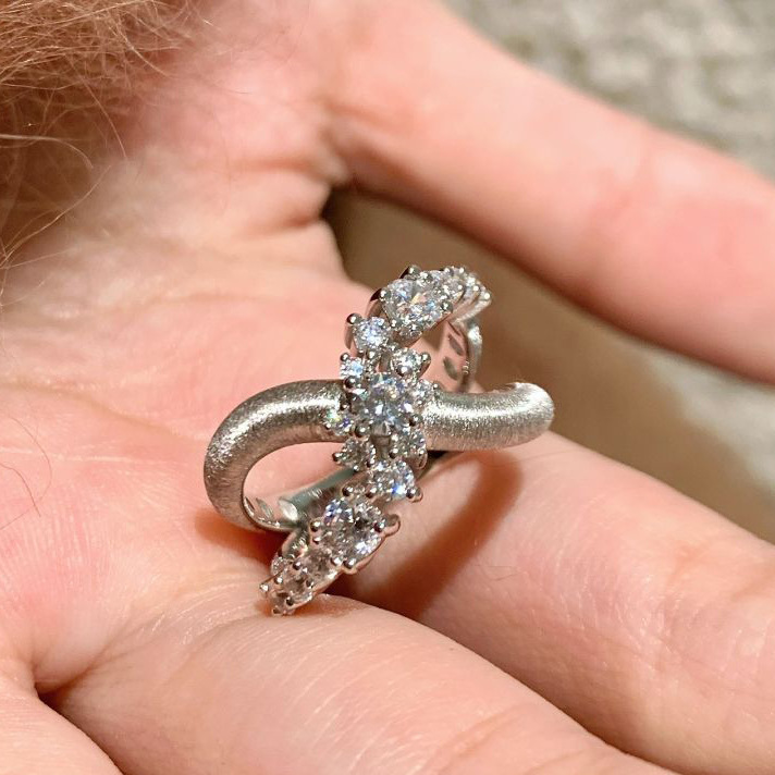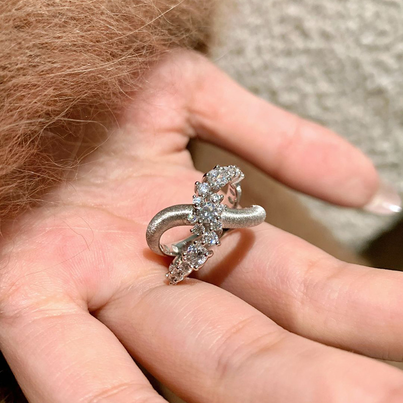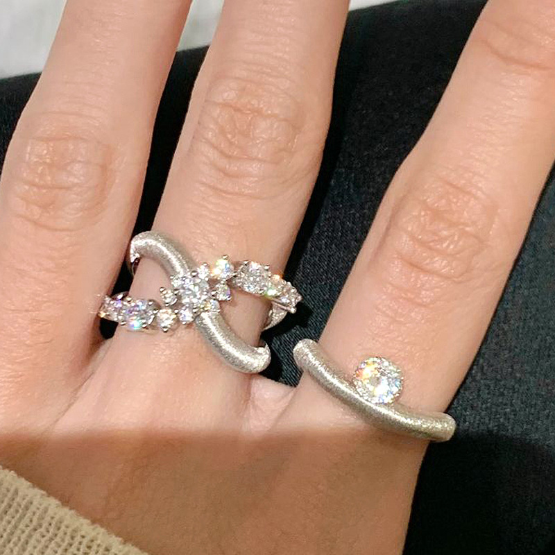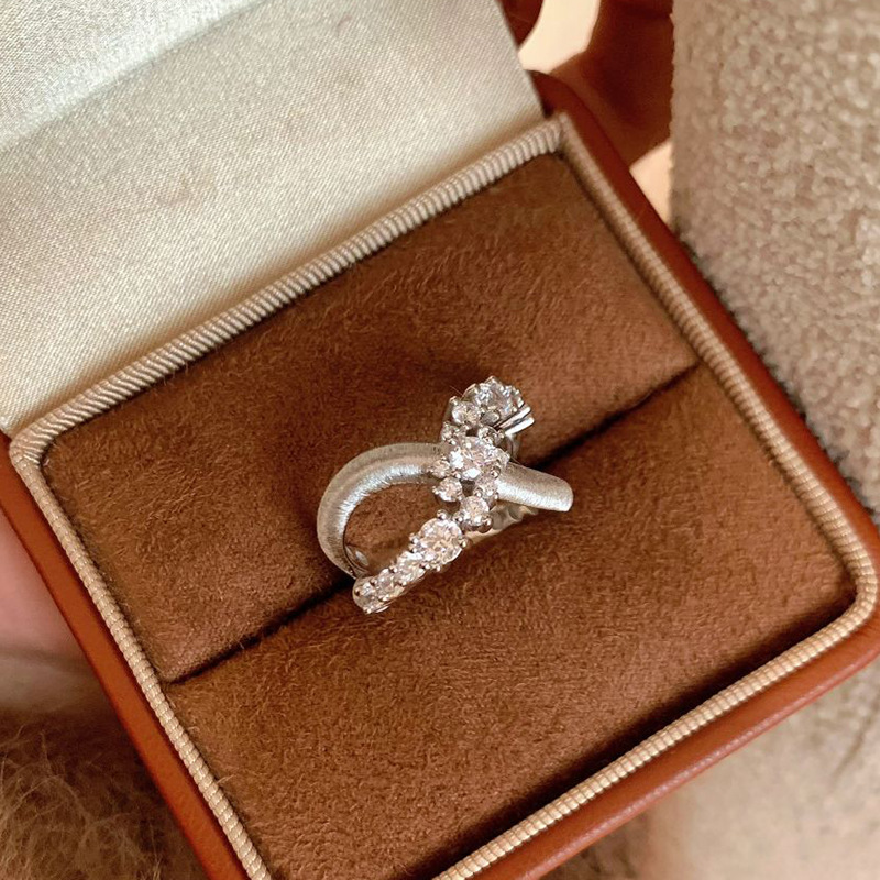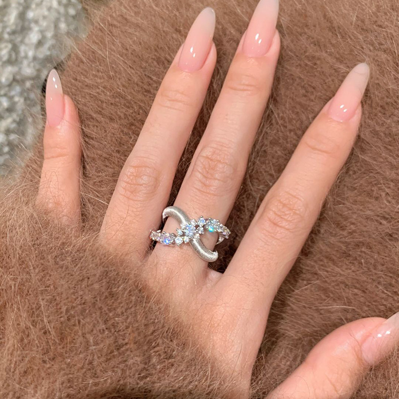 小红书爆款银河细闪点钻戒指意大利重工拉丝银色不规则交叉指环女