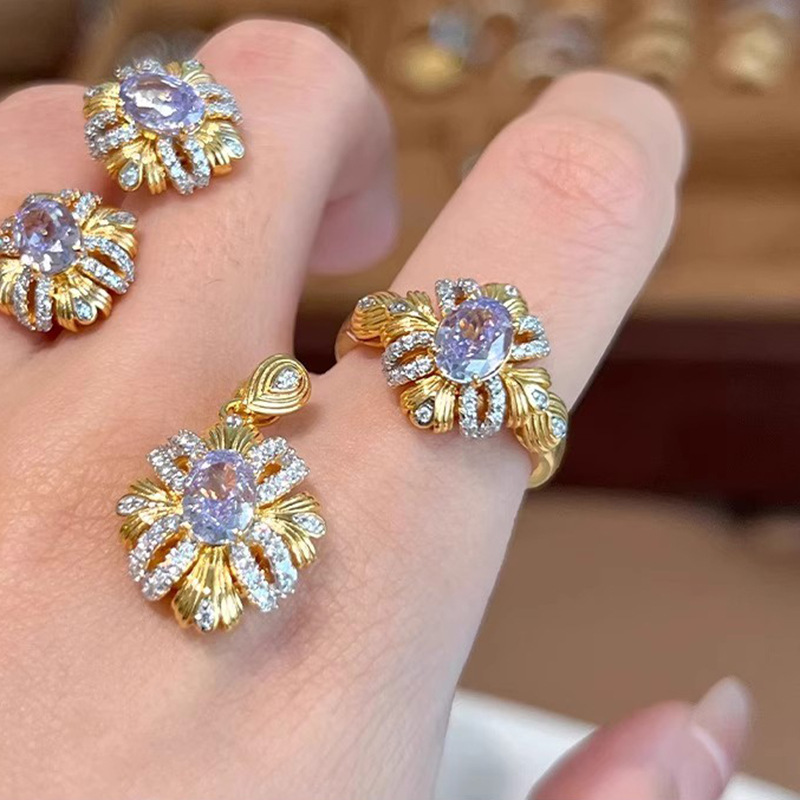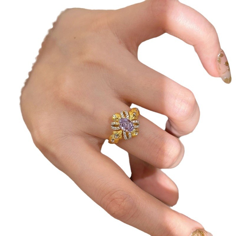 小红书爆款紫荆缎带戒指复古高贵优雅紫色锆石指环气质精致手饰品