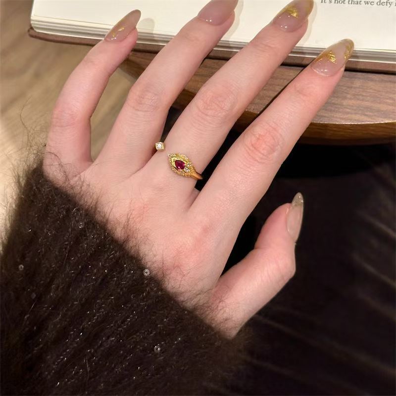 小红书爆款红头灵蛇开口戒指2025新款本命年蛇形复古指环
